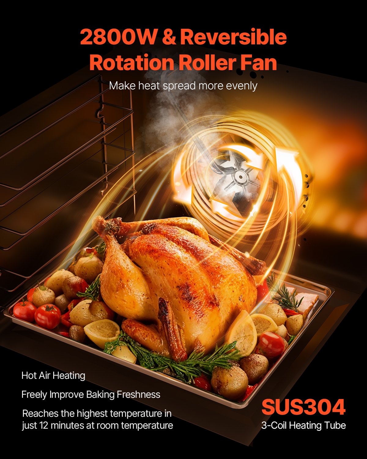VEVOR kommerzieller Konvektionsofen konventioneller Arbeitsplattenofen 58 L 2800 W Toasterofen mit Tür aus gehärtetem Glas, elektrischer Backofen mit Drahtgitter & Klemmtablett-Handschuhen