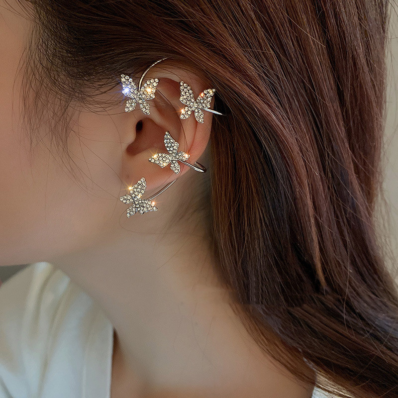 Korea Diamond Butterfly Ear Hook Without Pierced Bone Clip