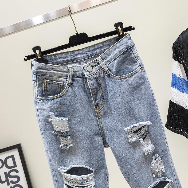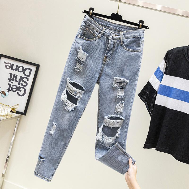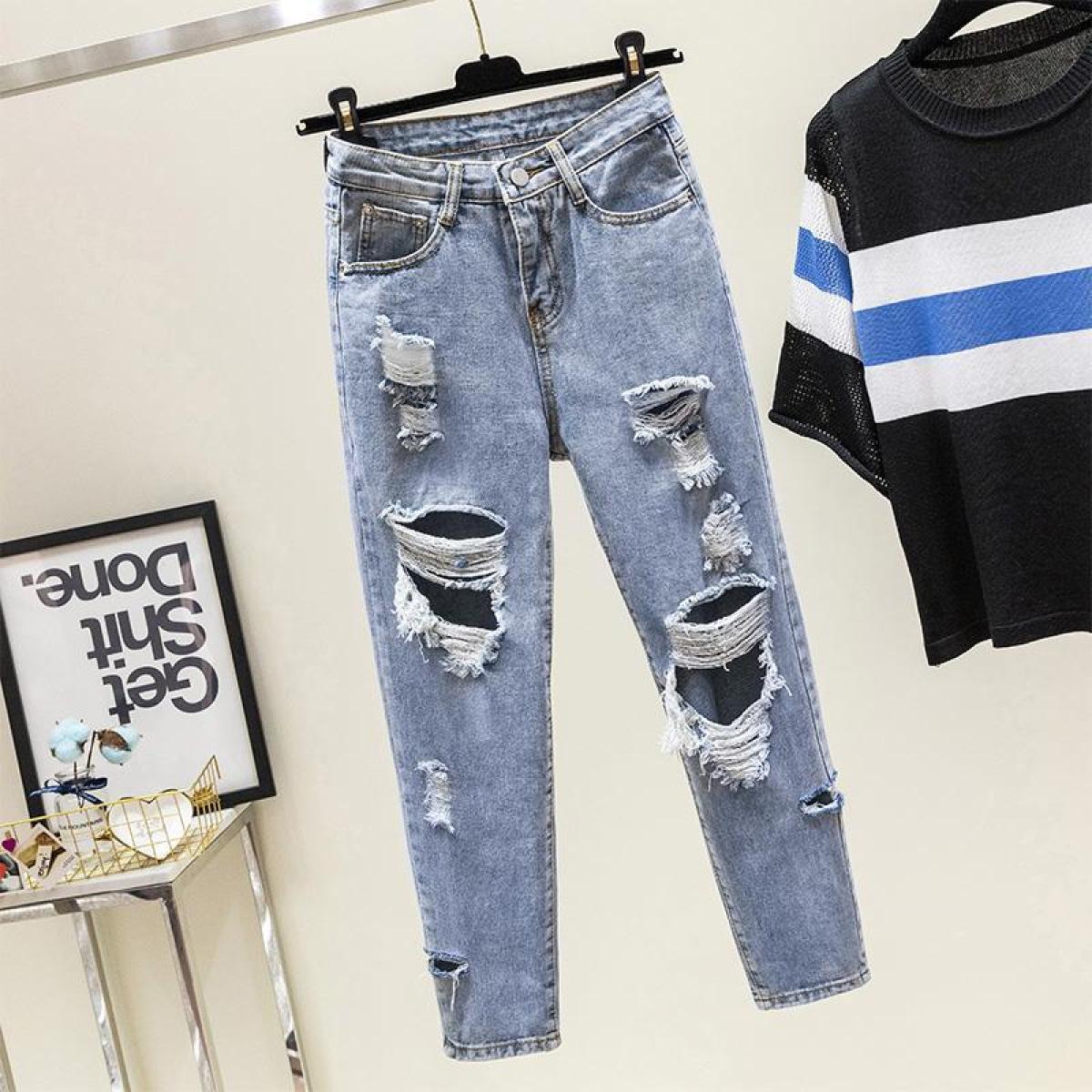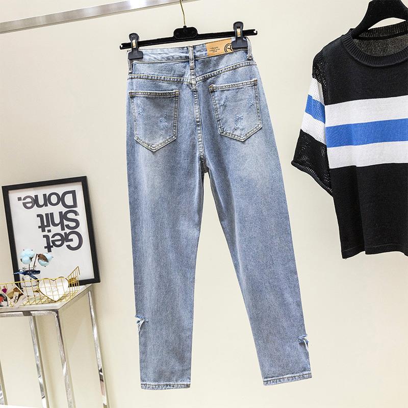 Style: baggy pantsPants length: Nine pantsWaist type: high waistDenim color: light colorStyle type: temperament commuting