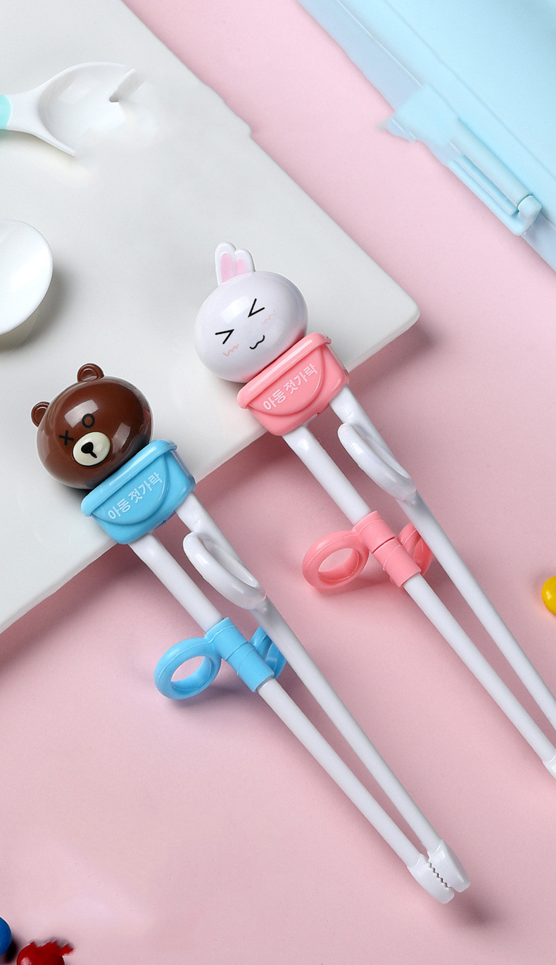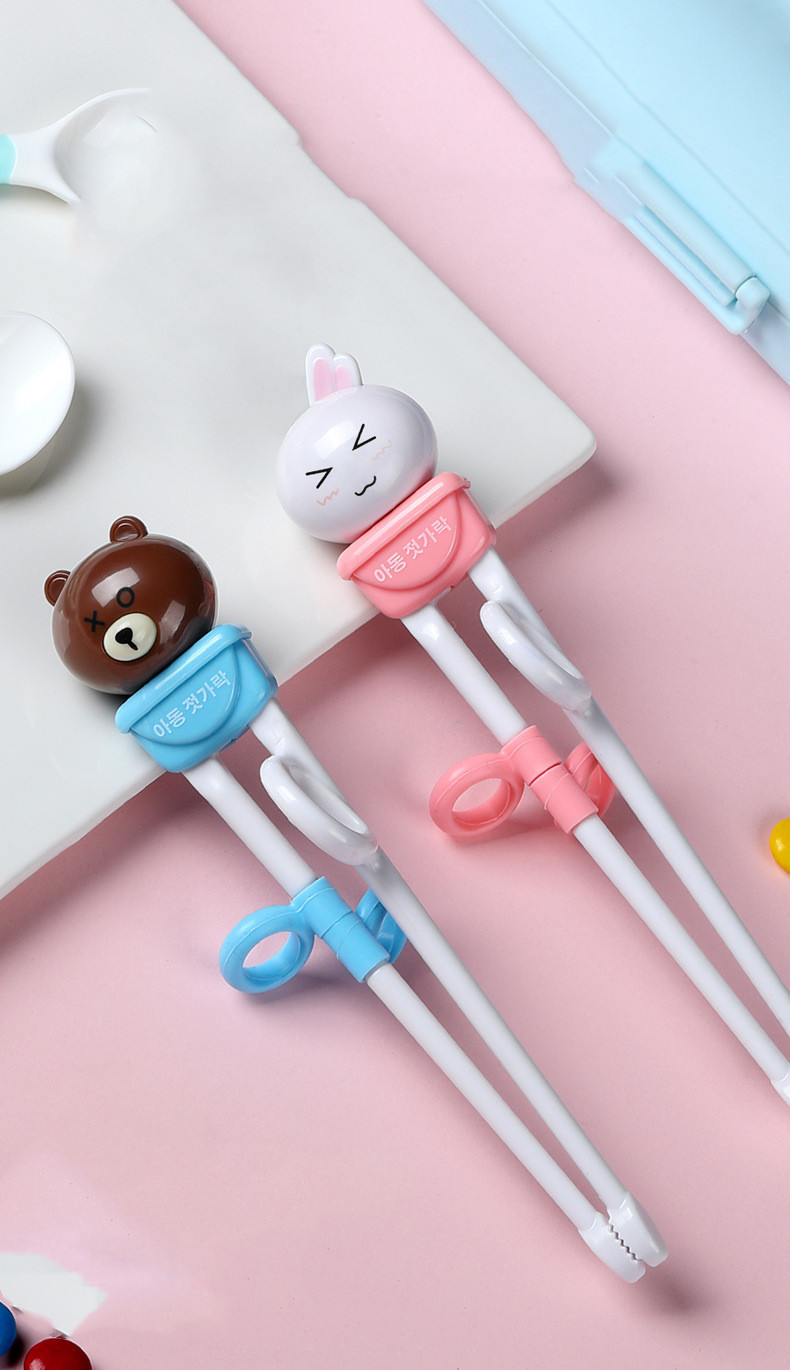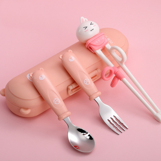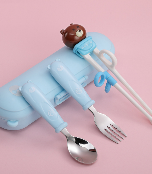 Bear learning chopsticks, rabbit learning chopsticks, blue storage box, pink storage box, blue 304 stainless steel spoon, pink 304 stainless steel fork