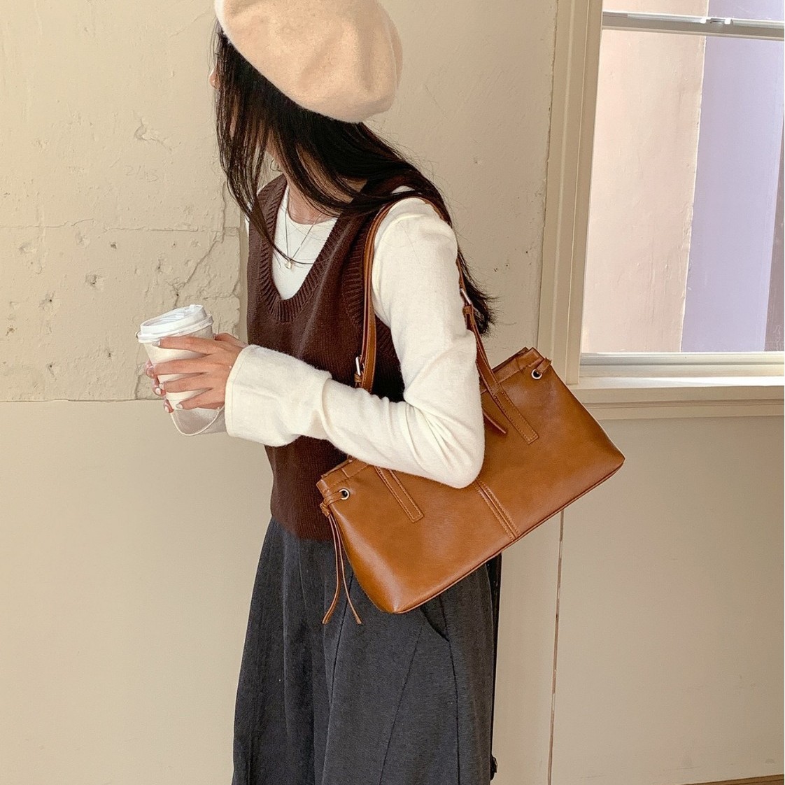 Korean Dongdaemun Retro-Inspired Casual Soft Leather Bag For Instagram Style