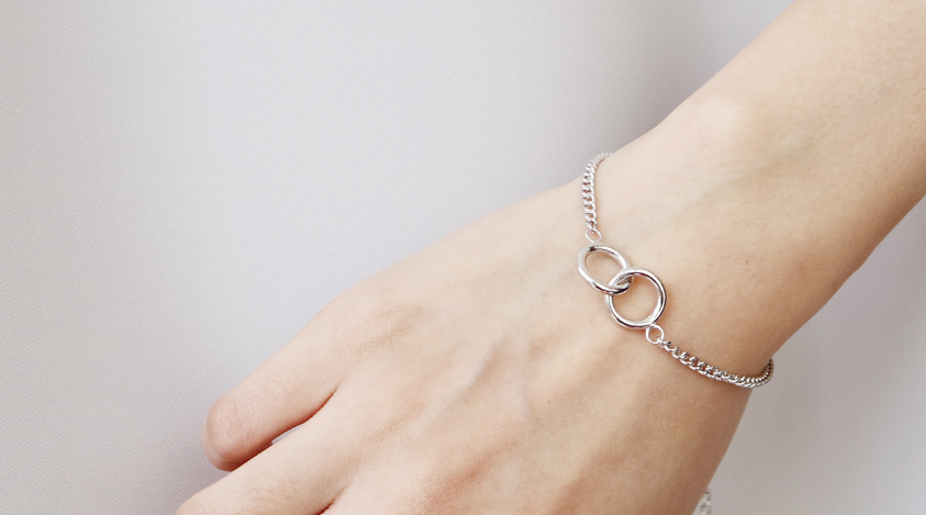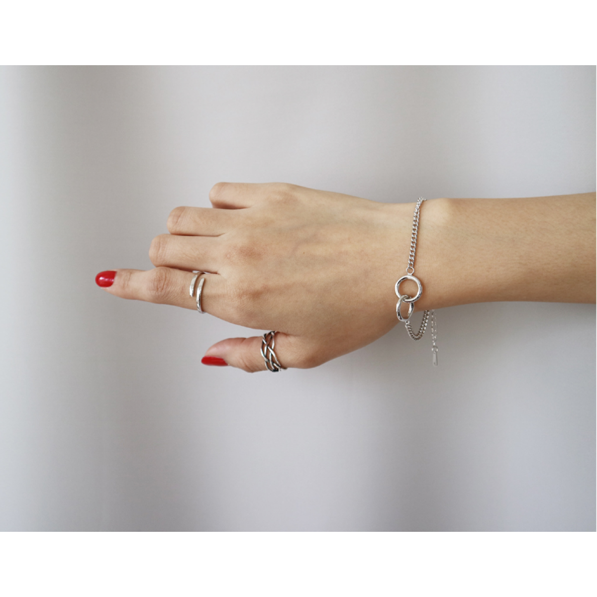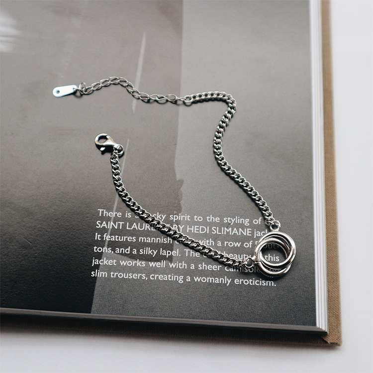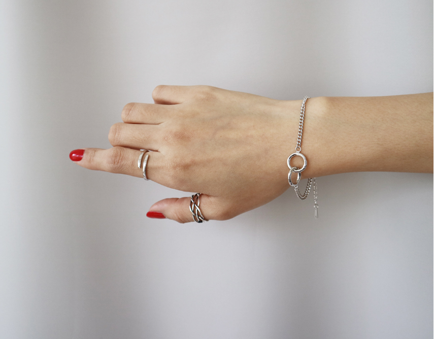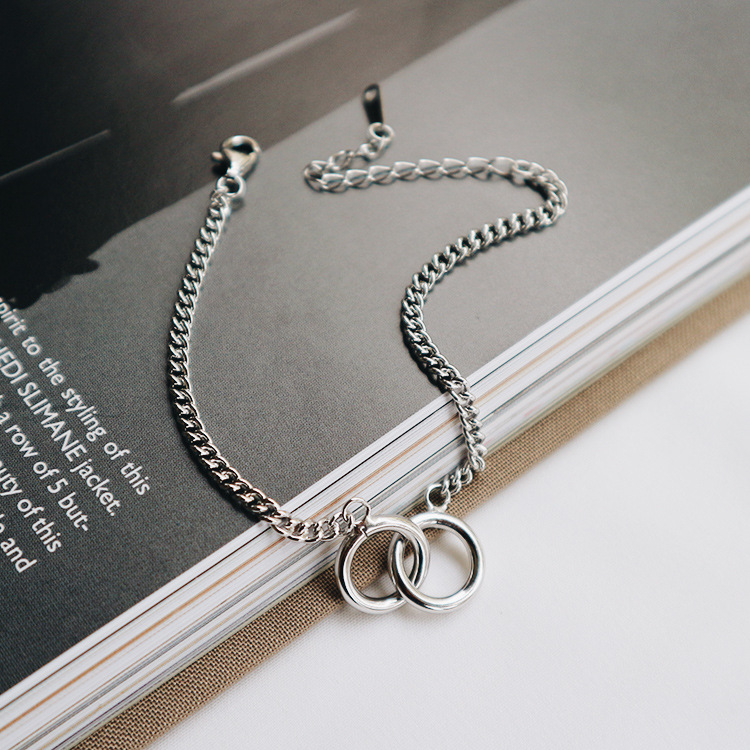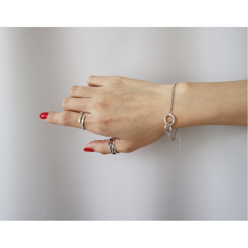Korean fashion trend S925 Sterling Silver double ring, retro flat chain, silver bracelet Jewelry