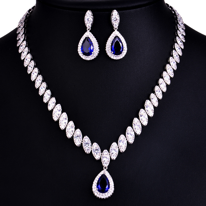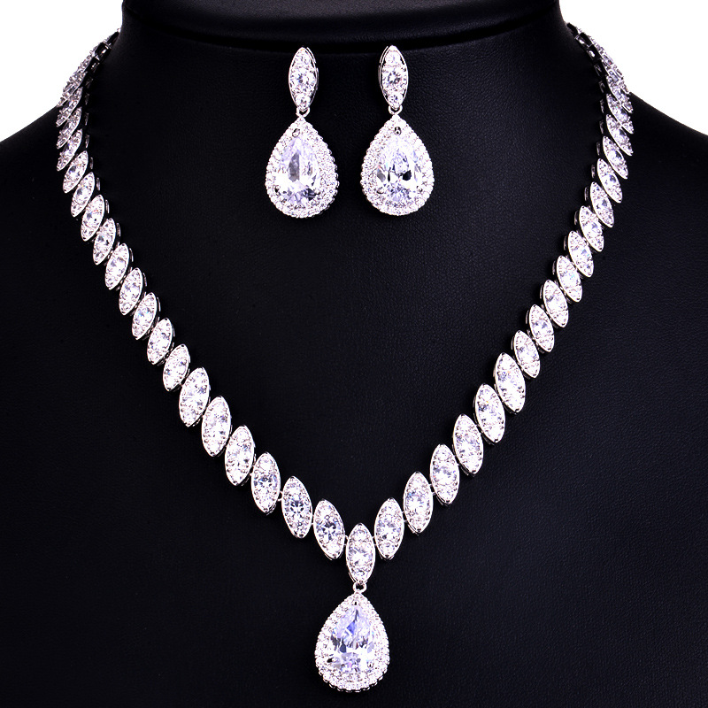 The bride jewelry pendant necklace wholesale Korean foreign trade in Europe and America two piece AAA zircon jewelry set