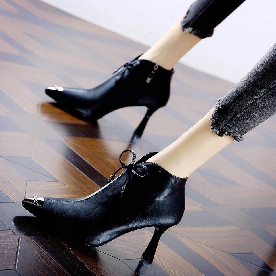 Korean Pointed Toe High Heels Stiletto Ankle Boots