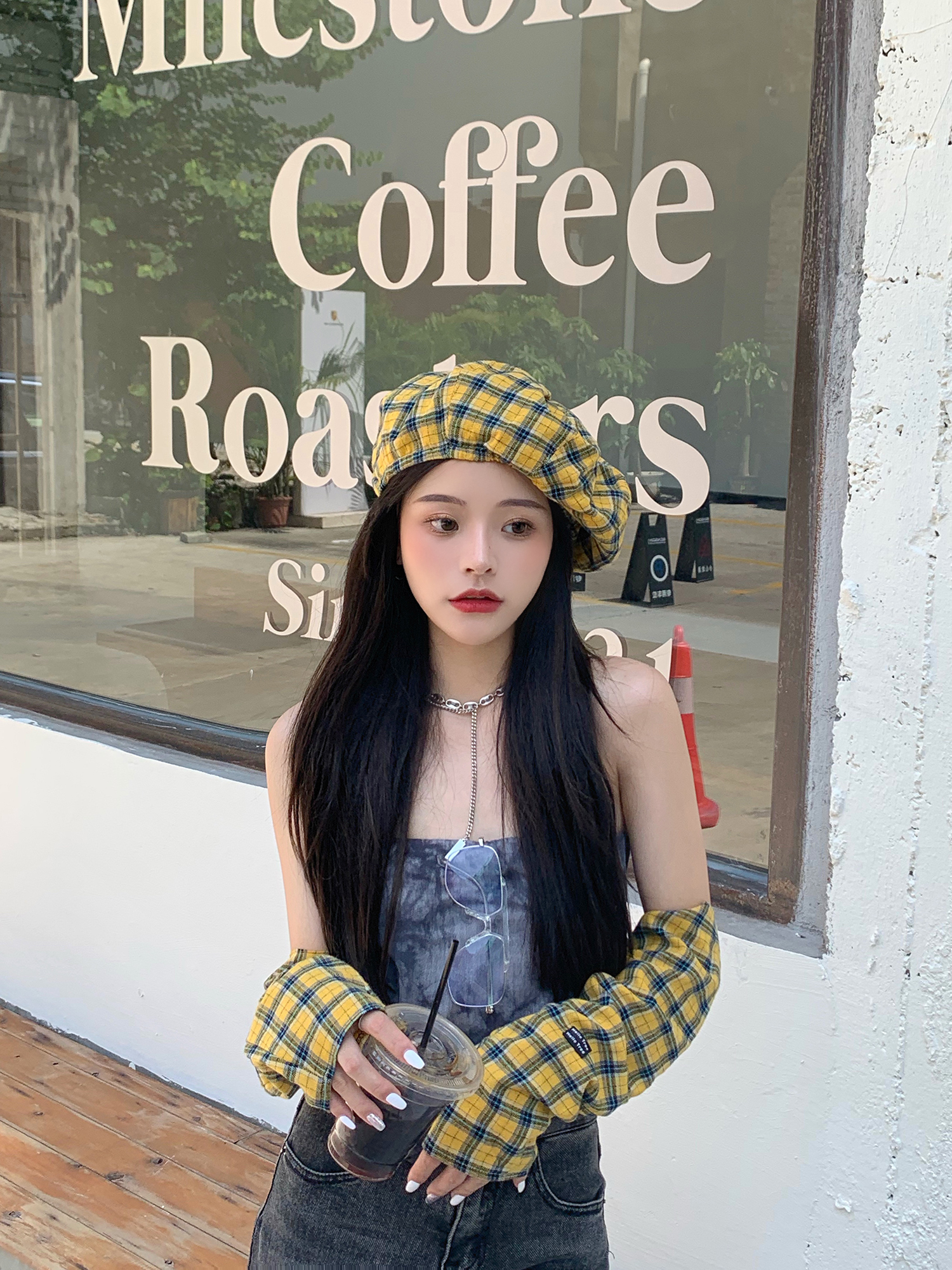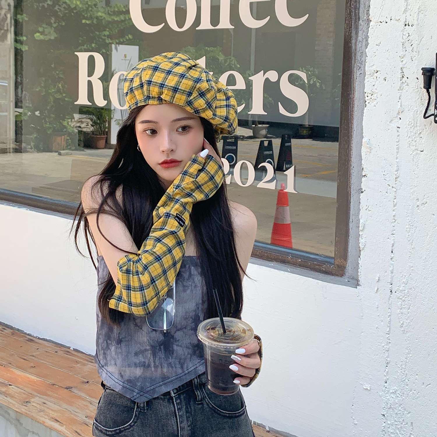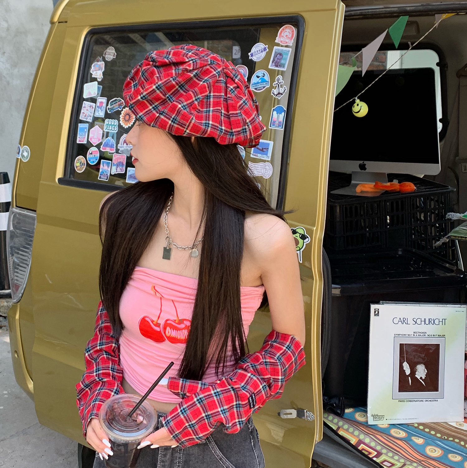 Hat*1 / Red plaid sleeves*1 pair