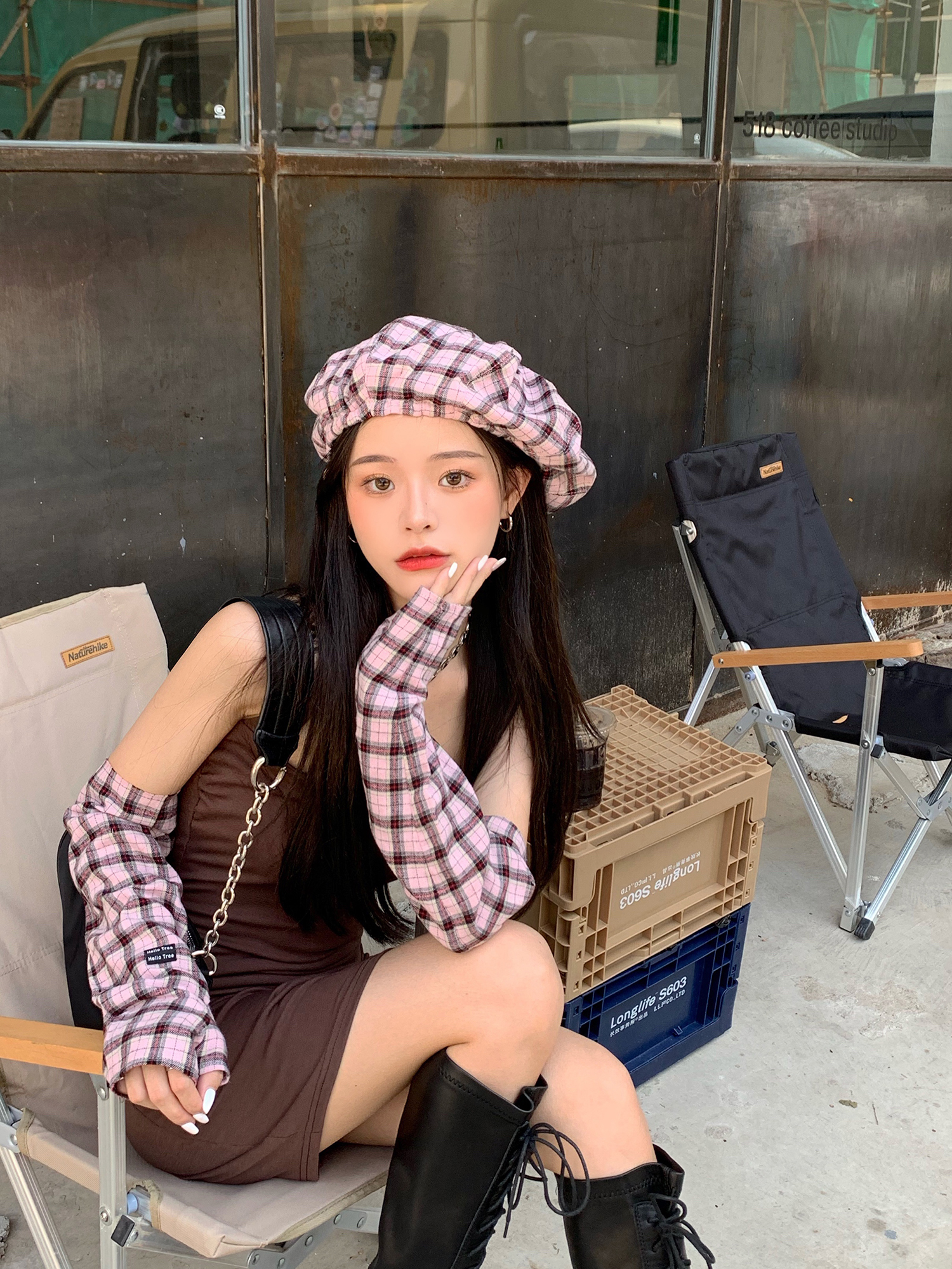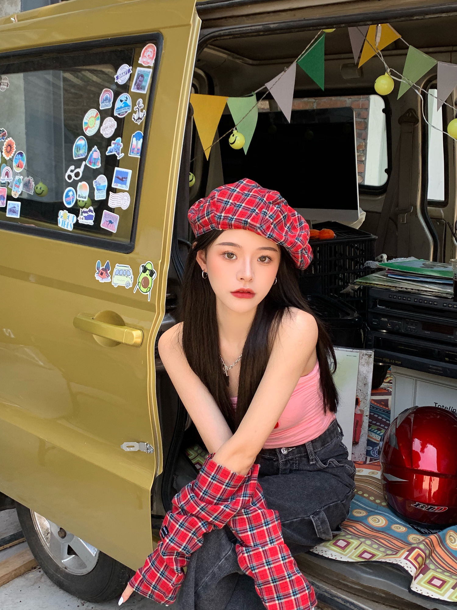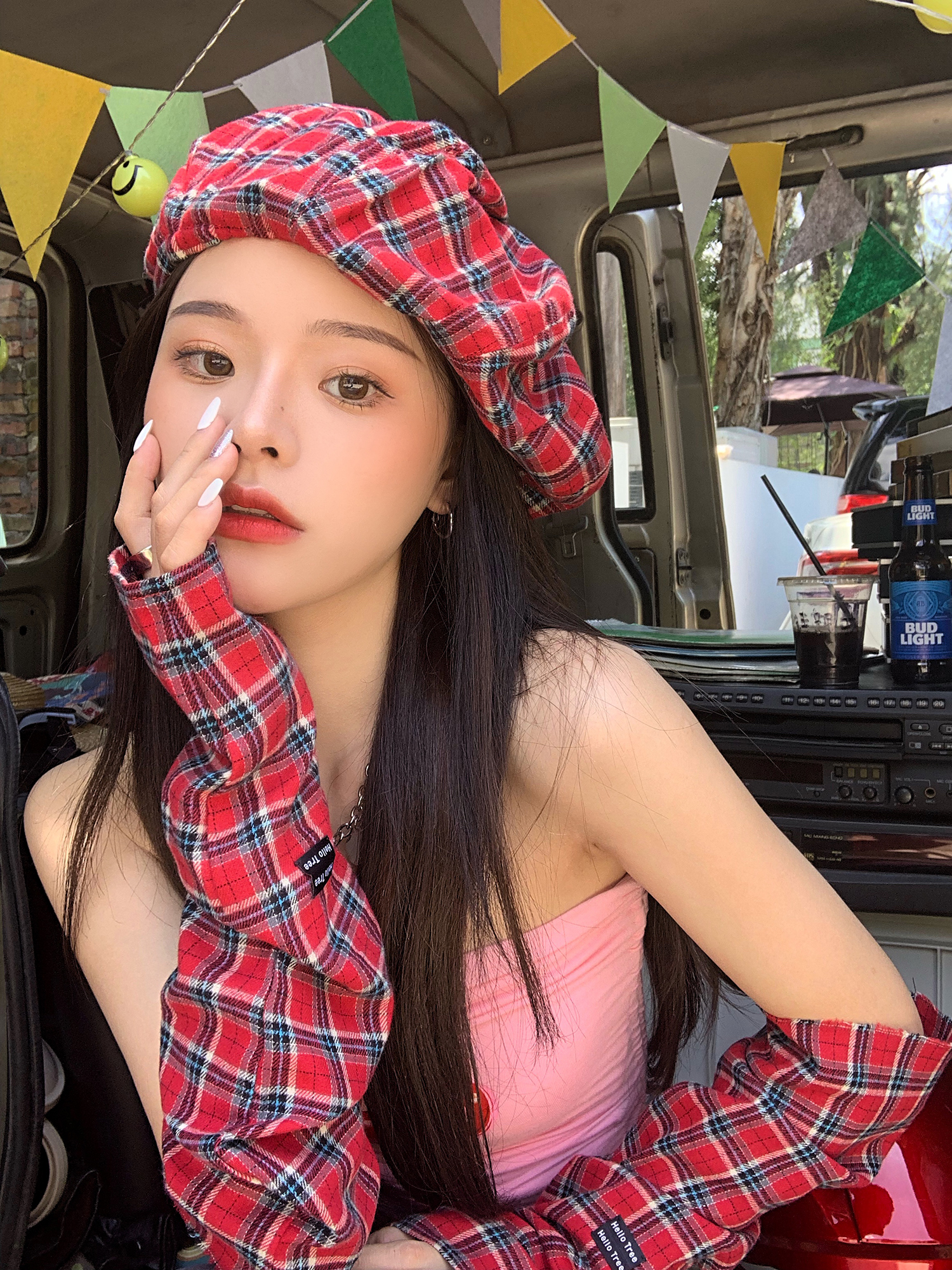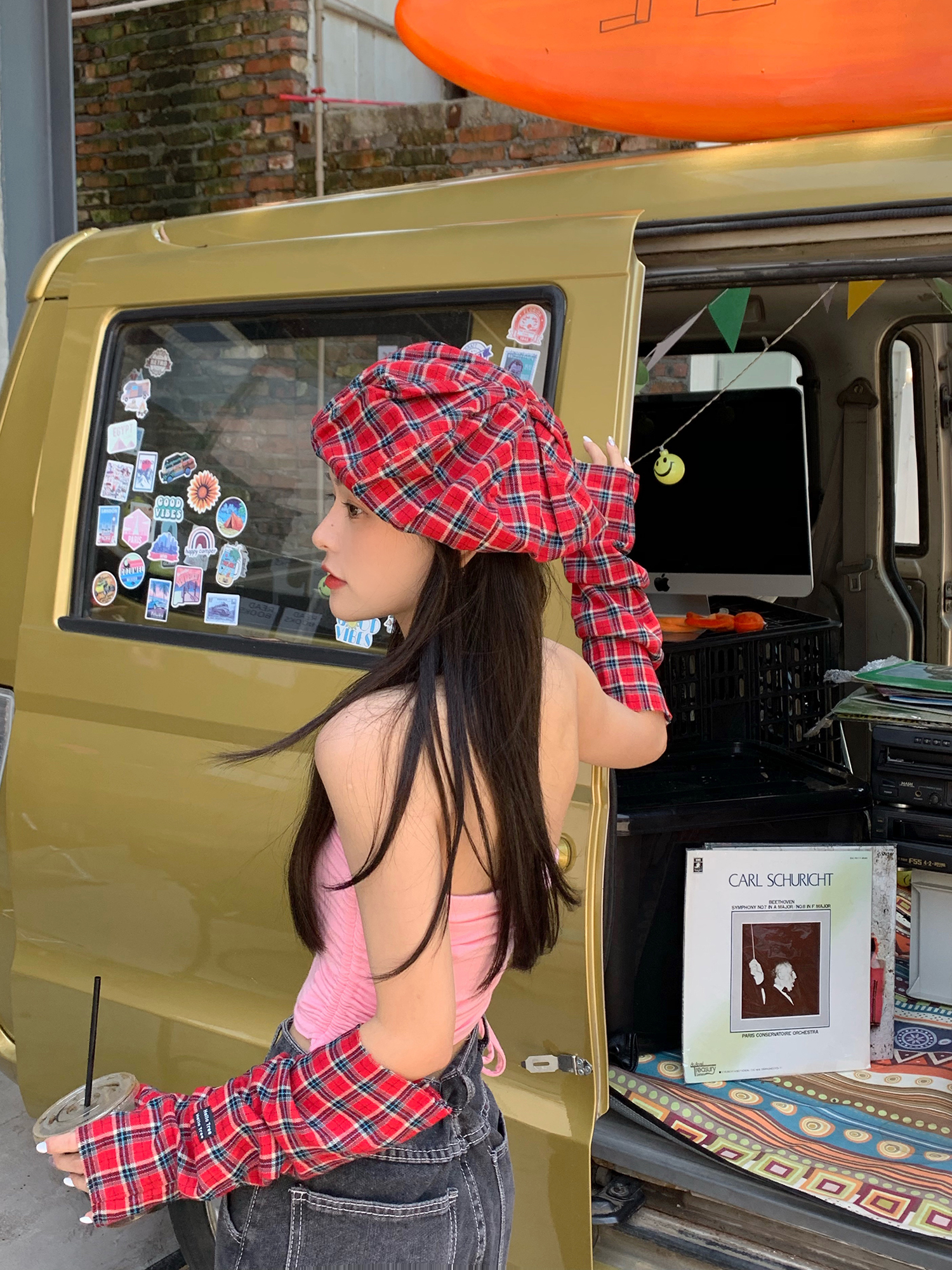 Hat*1 / Red plaid sleeves*1 pair