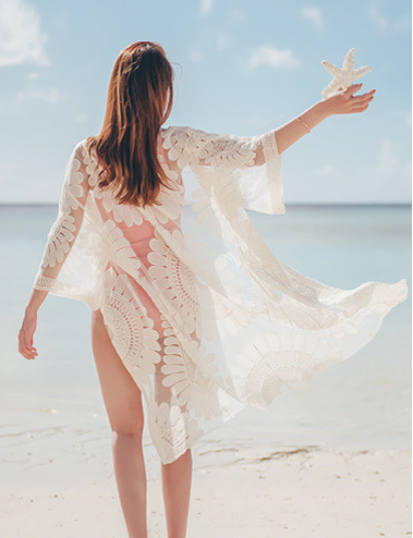 Korean small chest gathered Slim one-piece swimsuit female outside the long cardigan sunscreen clothing slim blouse