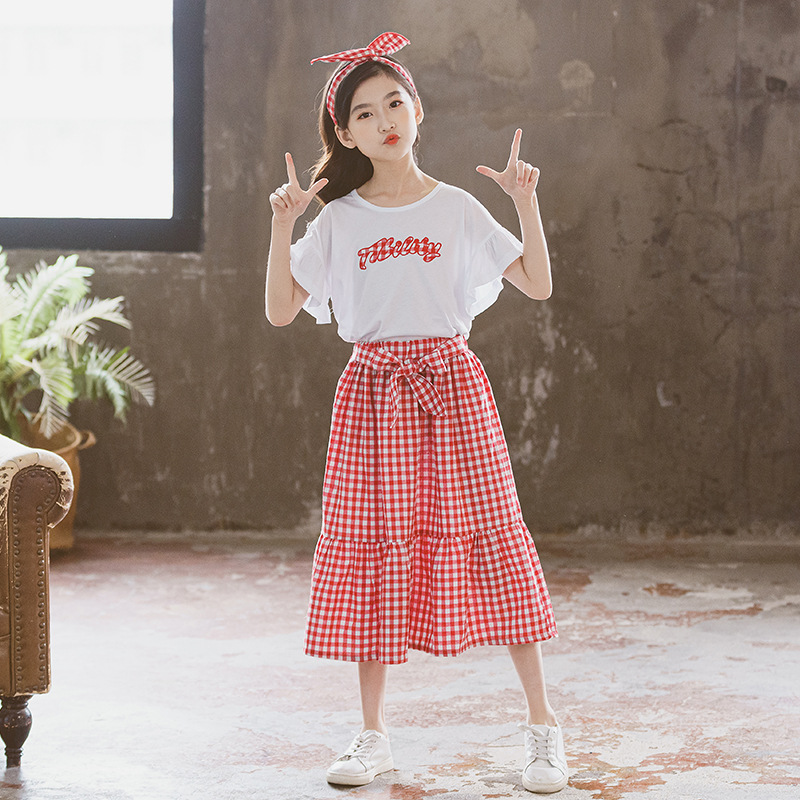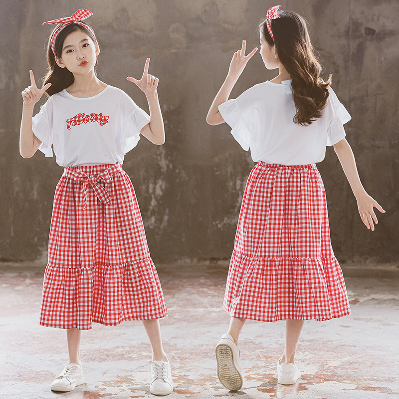Korean Style Big Kids Skirt Suit Lotus Leaf Sleeve Top