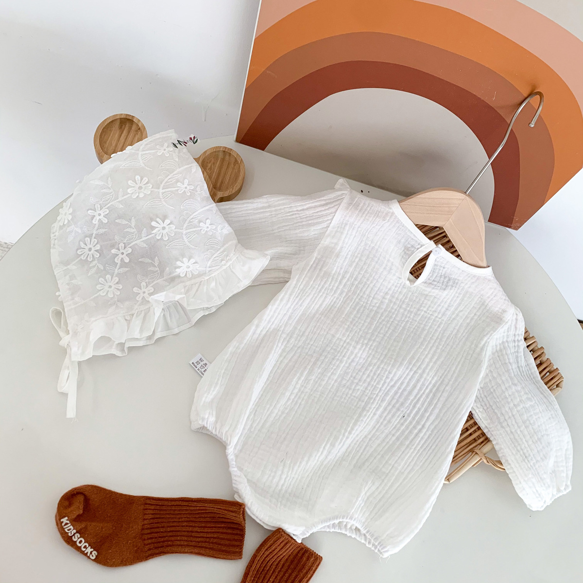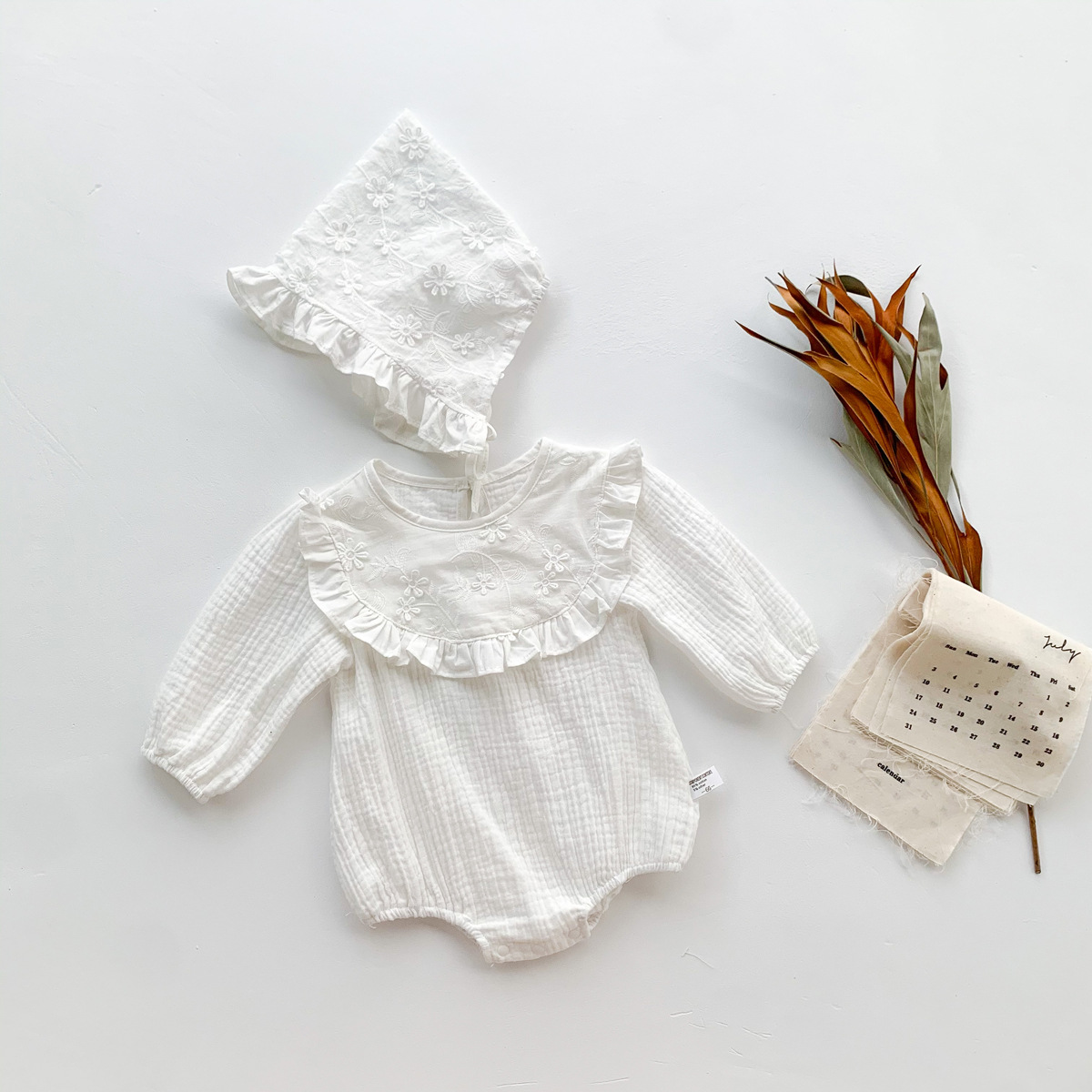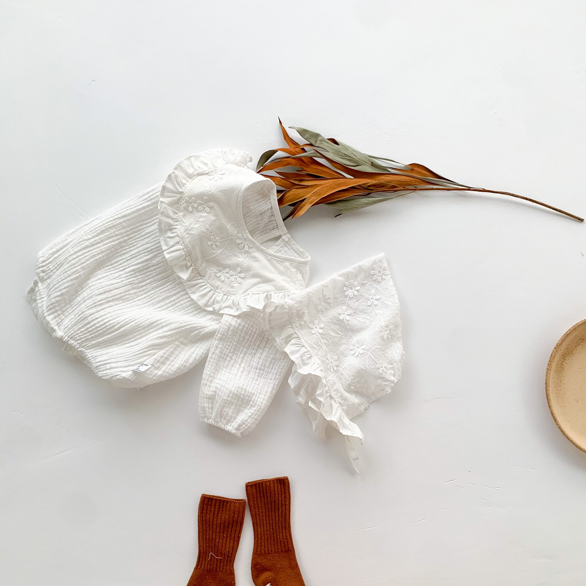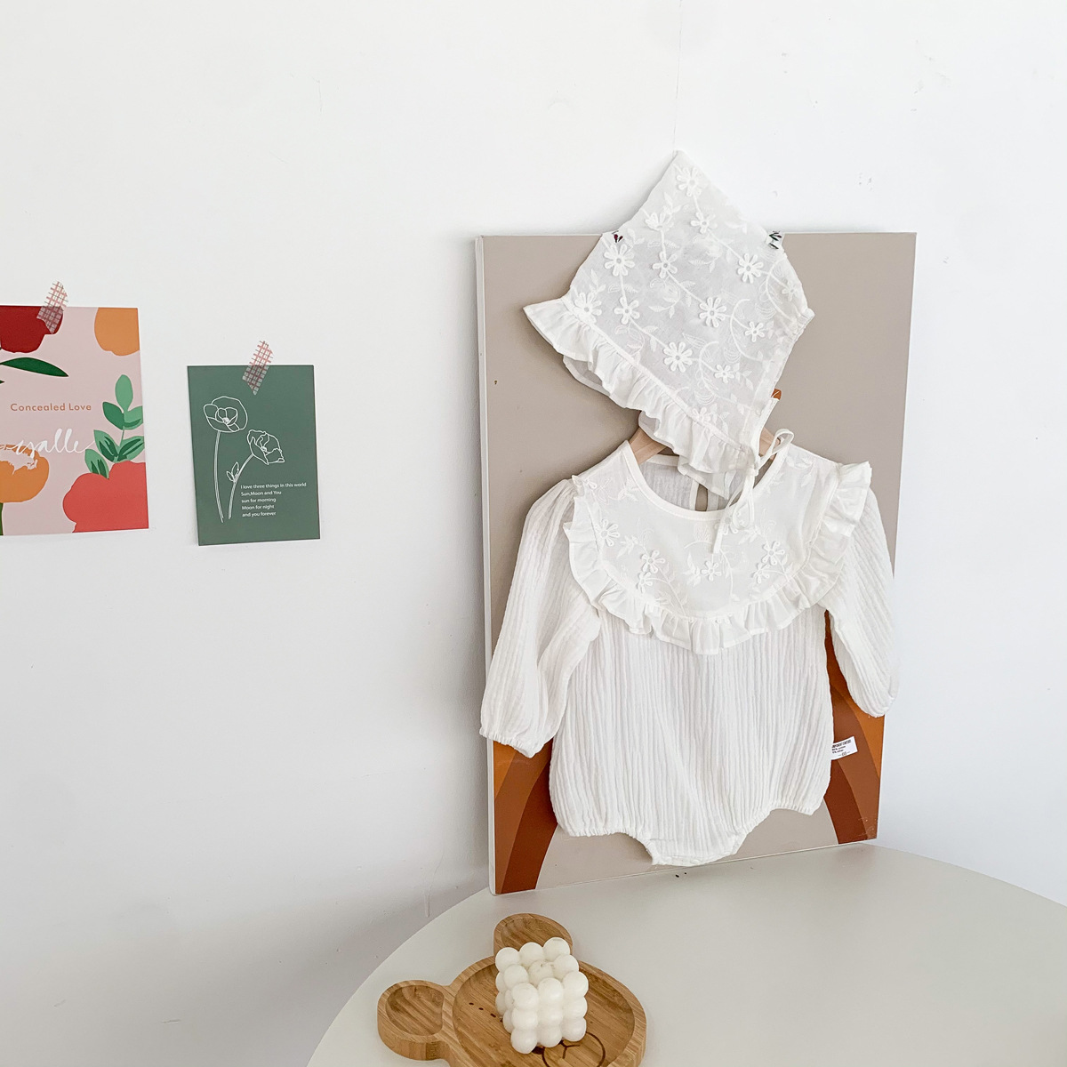 Korean Style Children's Princess One-piece Romper Female Baby Western Style Puff Sleeve Ruffled Collar