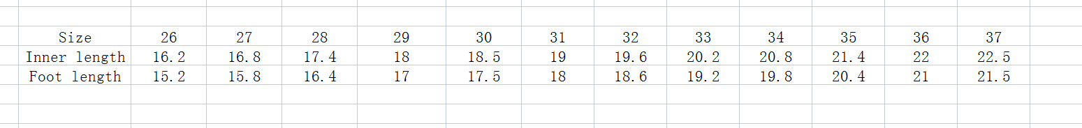 Size: 26, 27, 28, 29, 30, 31, 32, 33, 34, 35, 36, 37