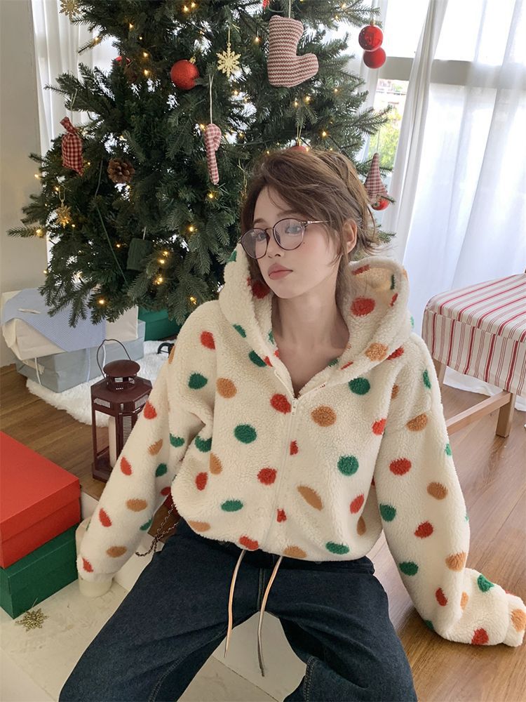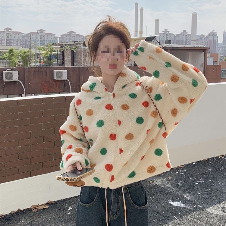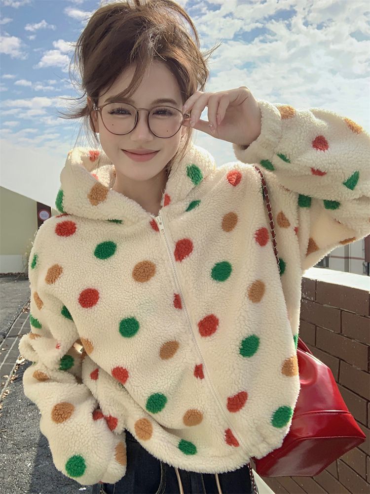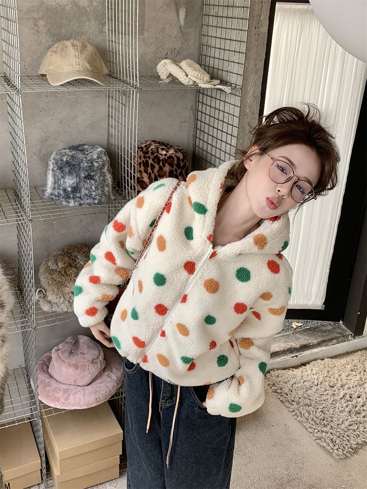 Korean-style Cute Lamb Wool Colorful Polka Dot Coat