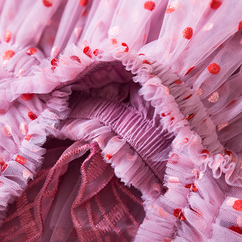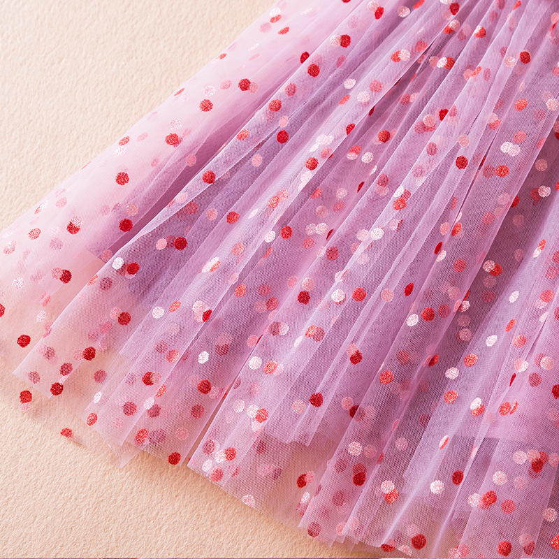 Korean Style Flounced Sleeve Dot Mesh Princess Dress