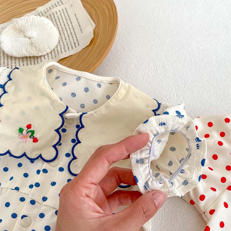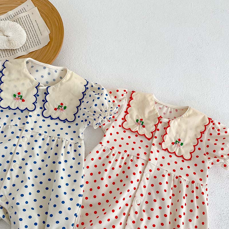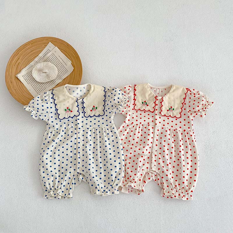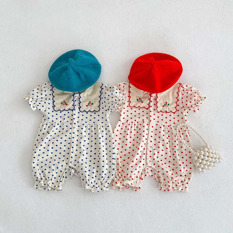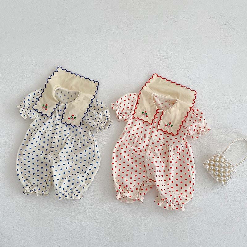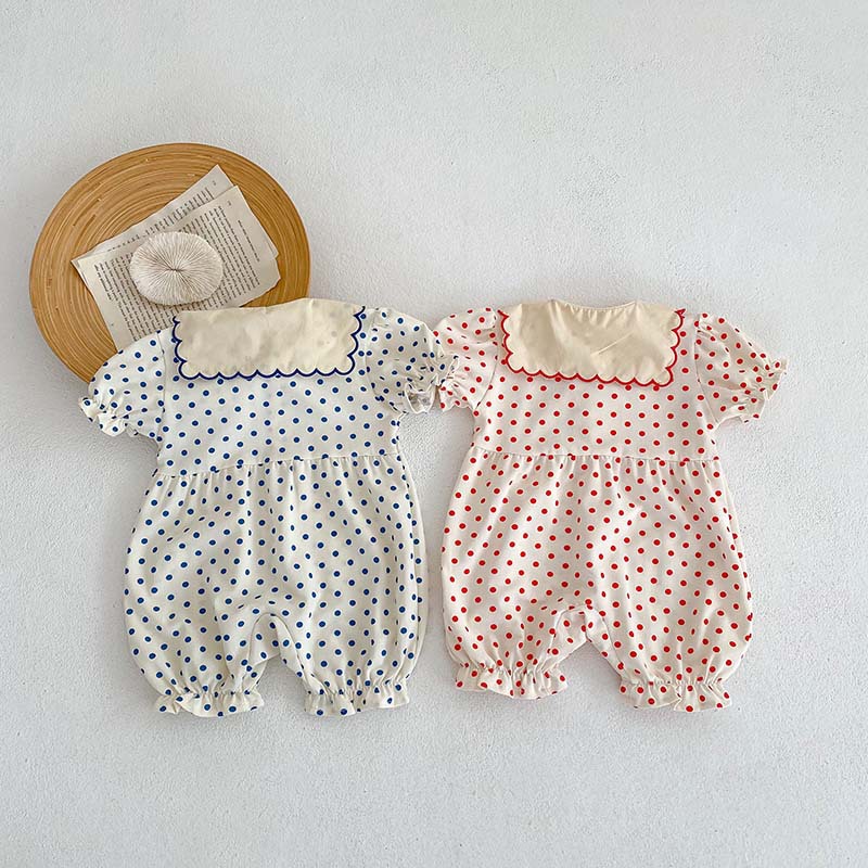 Color: blue dot jumpsuit, red dot jumpsuit