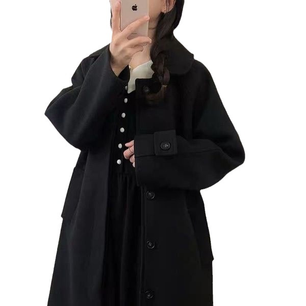 Korean Style High-grade Thickened Black Woolen Coat
