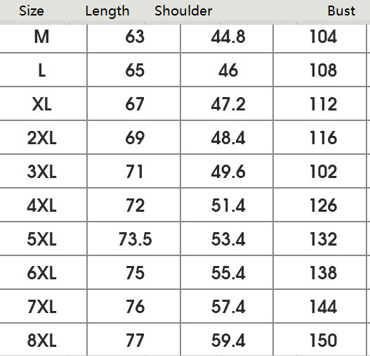 Size: M, L, XL, 2XL, 3XL, 4XL, 5XL, 6XL, 7XL, 8XL