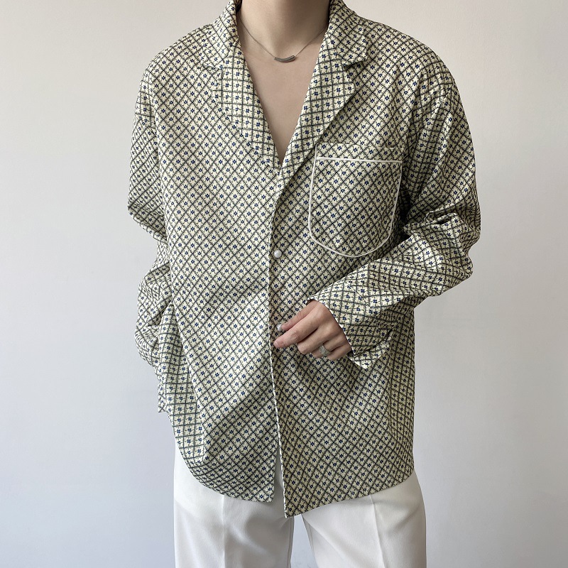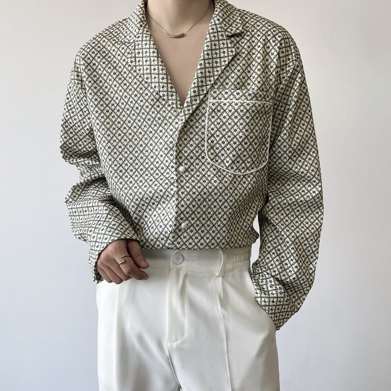 Korean Style Lightly Mature Wear Cuban Collar Shirt