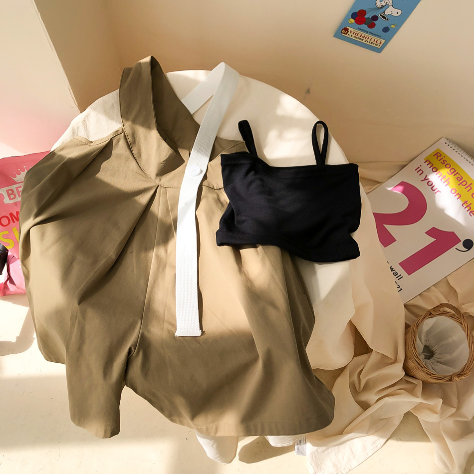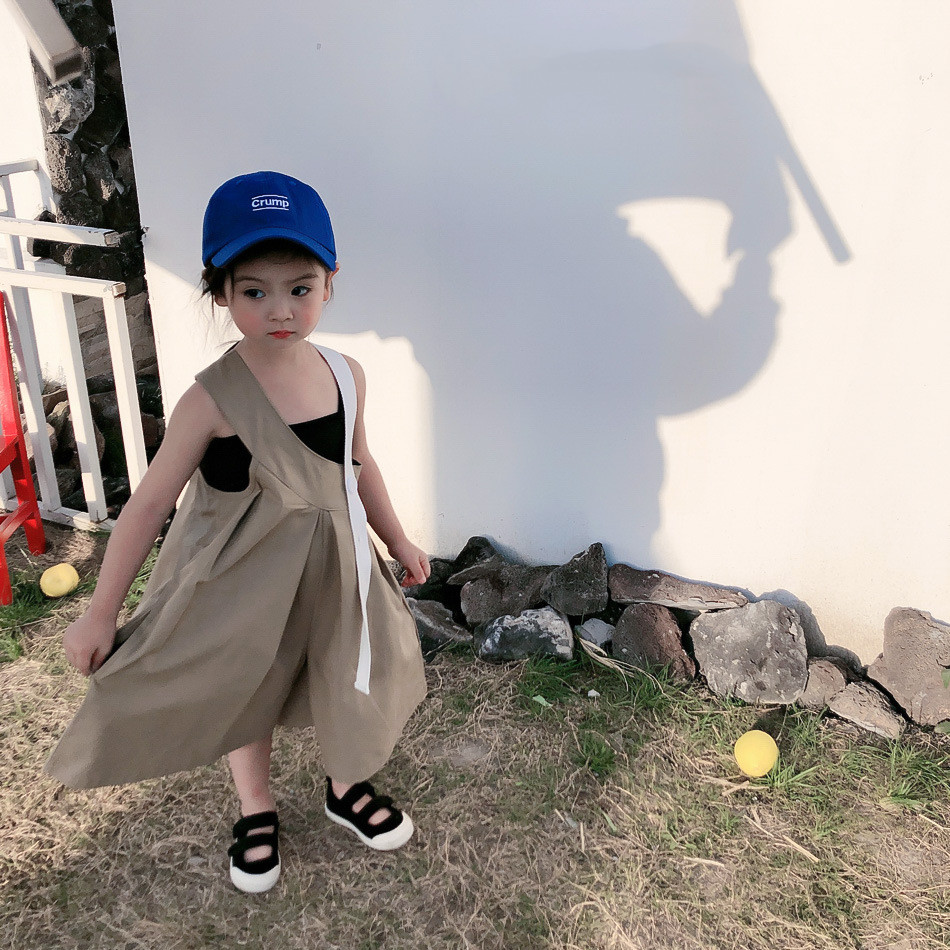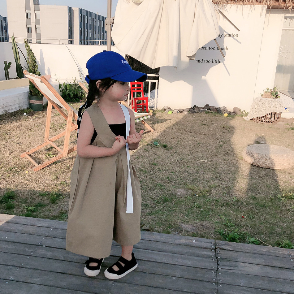 Korean Style Loose Jumpsuit For Baby Girl Personality Sling Top Wide Leg Pants TwoPiece Suit
