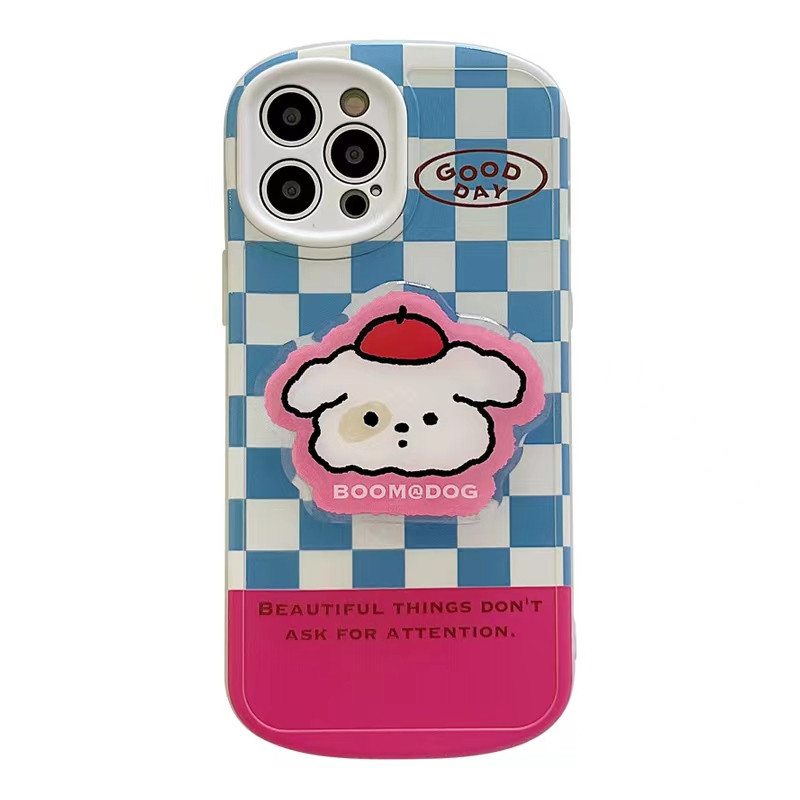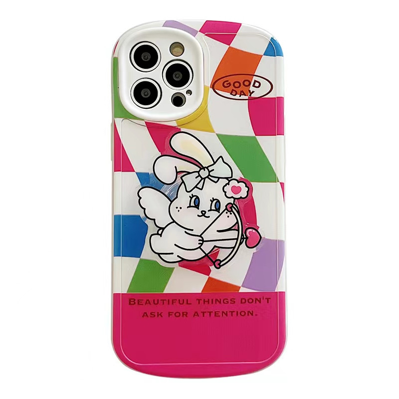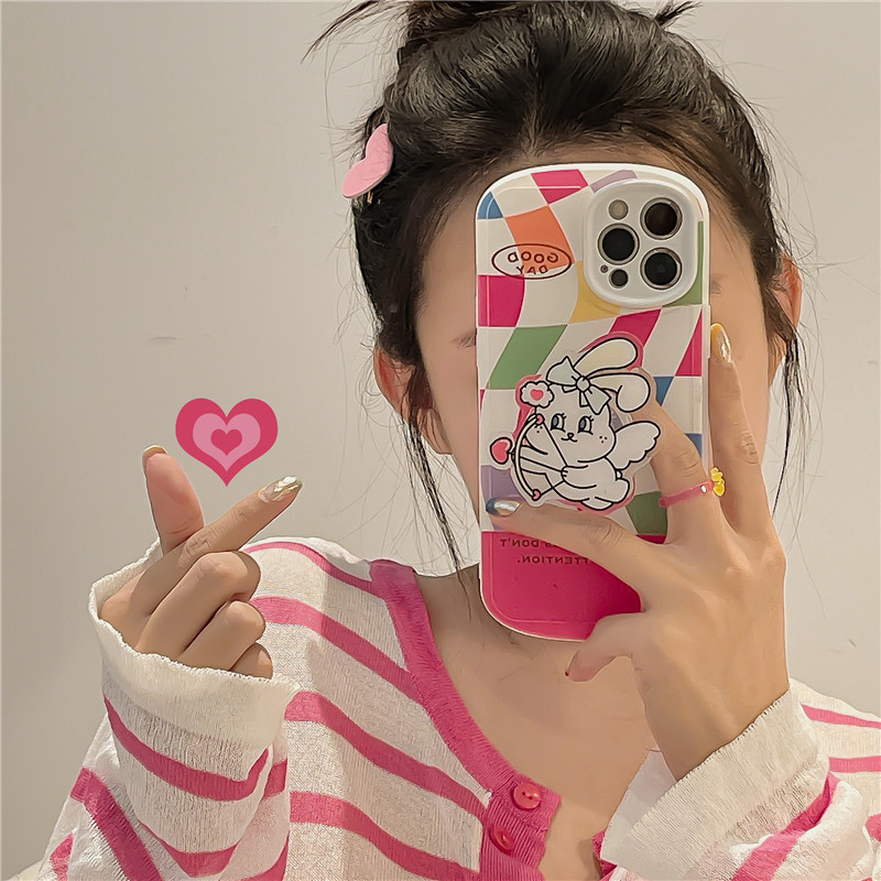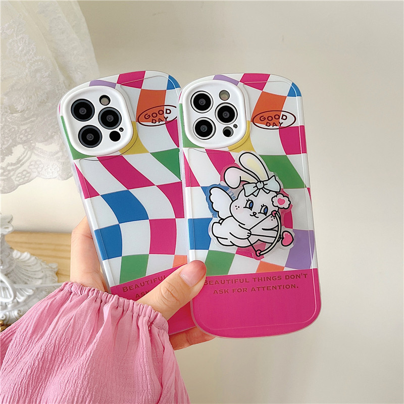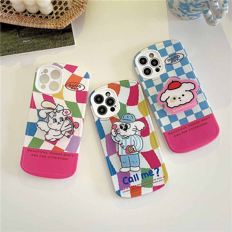 Arc IMD Color Twisted Plaid Splicing Red + Archery Rabbit Bracket, Arc IMD Blue Plaid Splicing Red + Red Hat Puppy Bracket