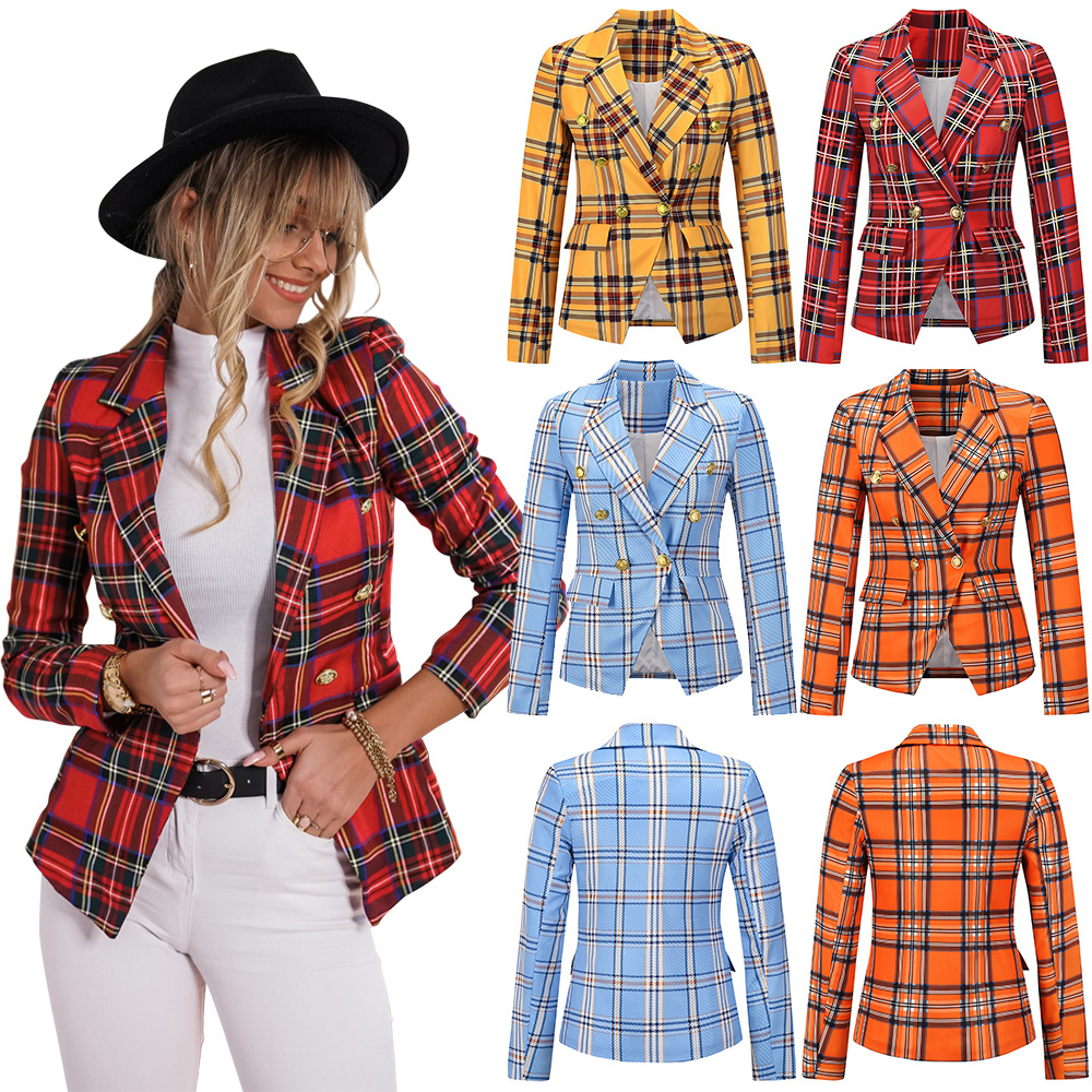 Features:Check double breasted