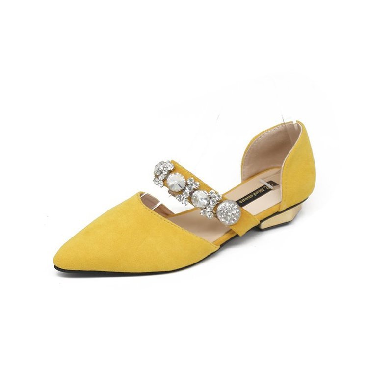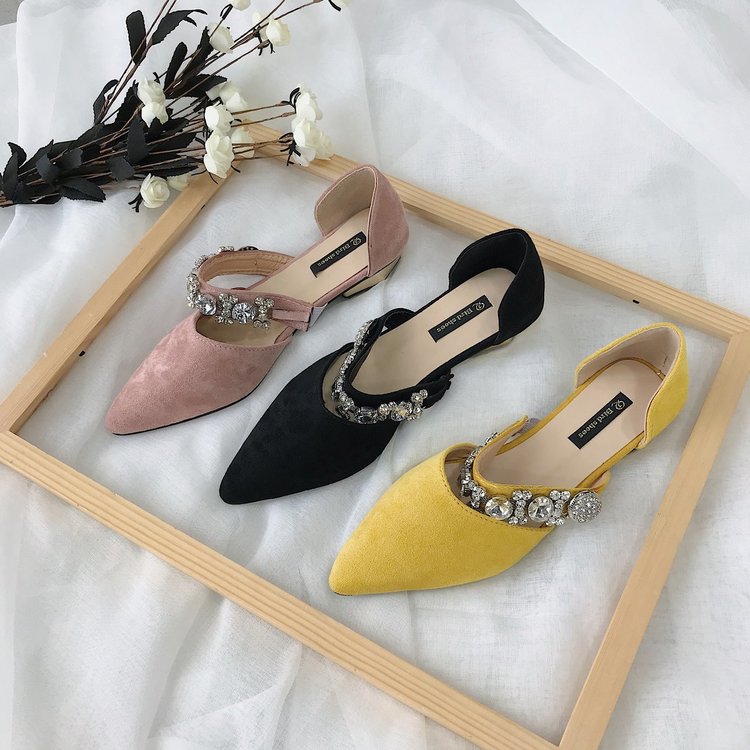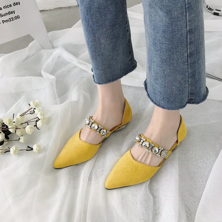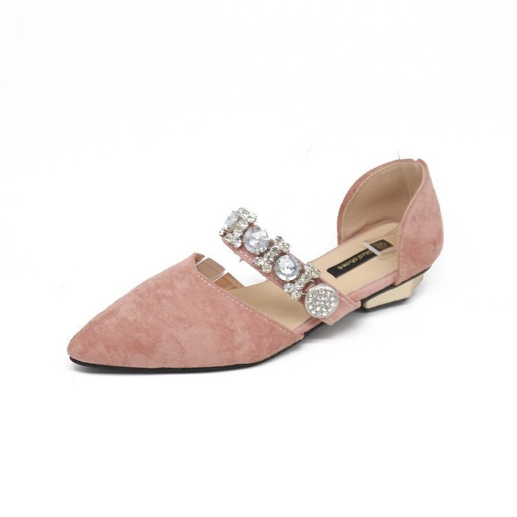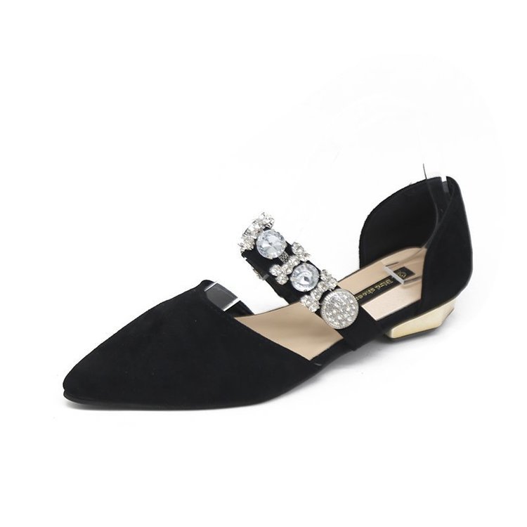 Korean Style Pointed Rhinestone Beaded Hollow Low-heeled Flat-bottomed French Girl Shoes