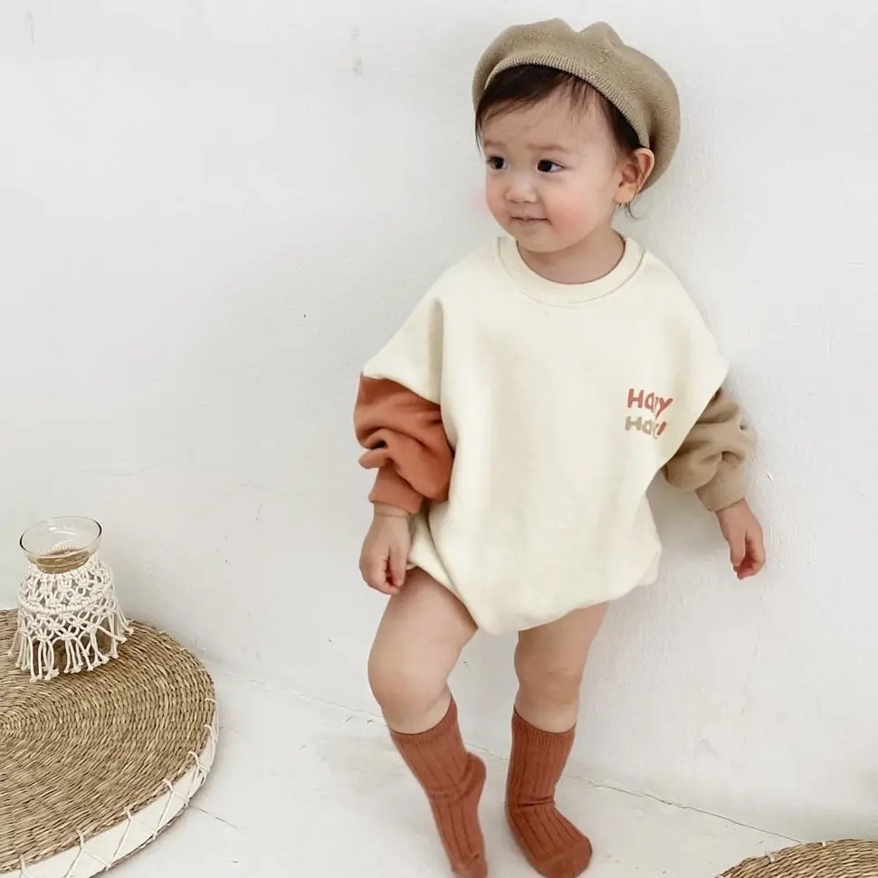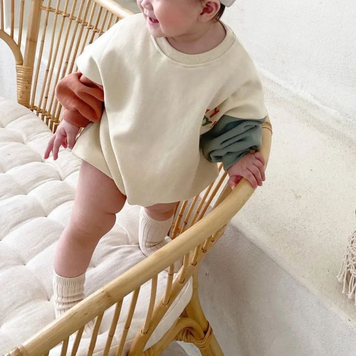 Color: left and right color matching rompers (apricot), left and right color matching rompers (green)