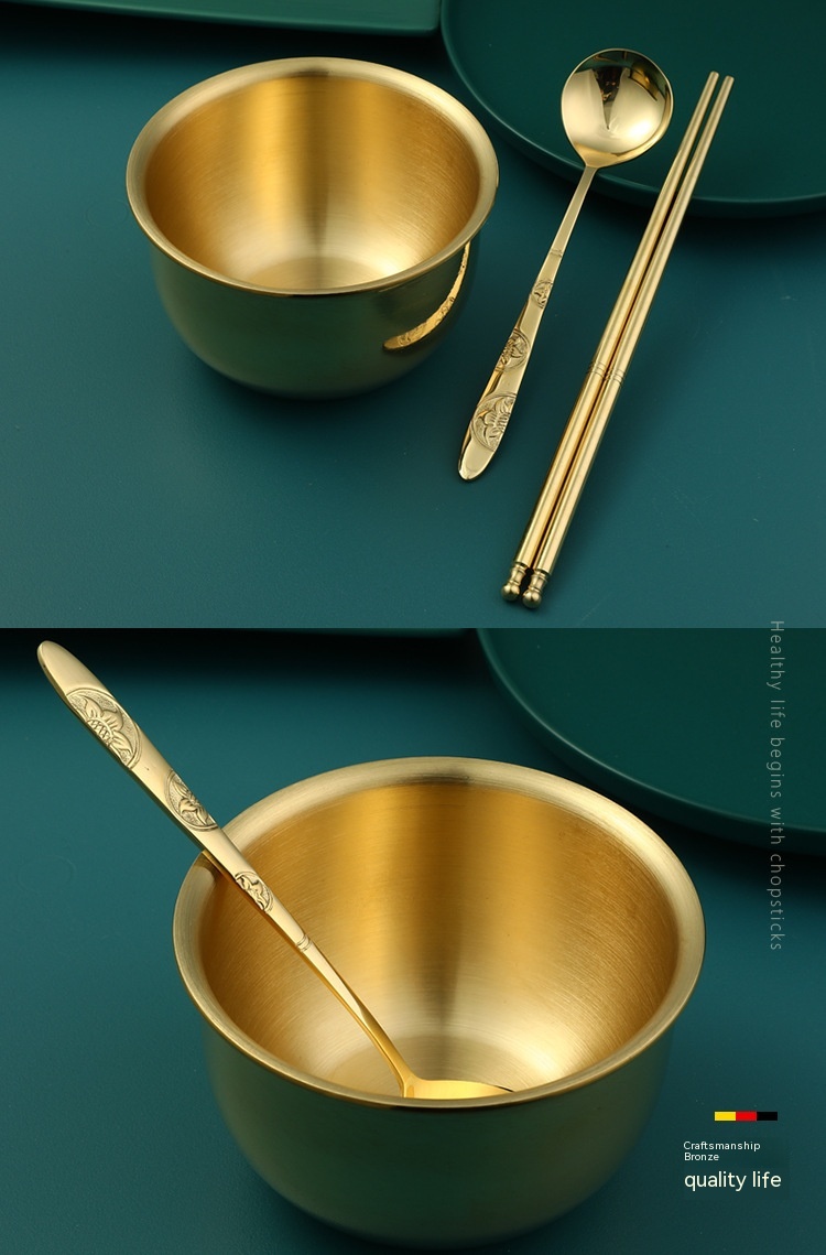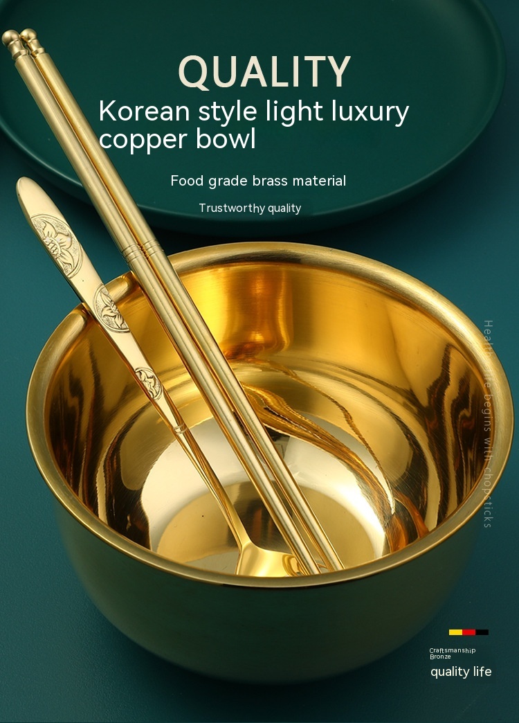 Korean Style Pure Copper Frosted Brushed Thickened Anti Scalding Rice Bowl