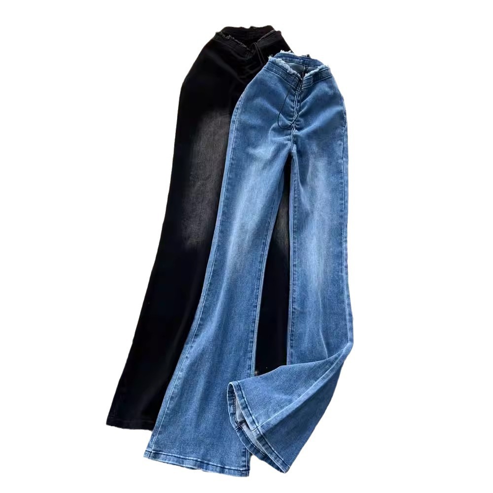 Korean Style Raw Hem High Waist Split Jeans