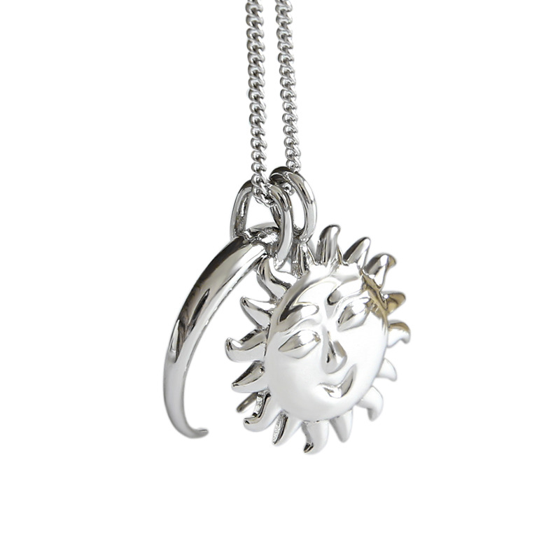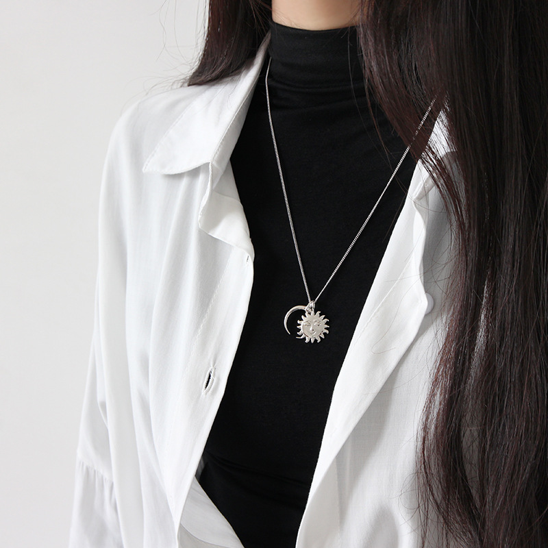 Korean Style S925 Sterling Silver Necklace Ins Simple All-match Sun Moon Sweater Chain