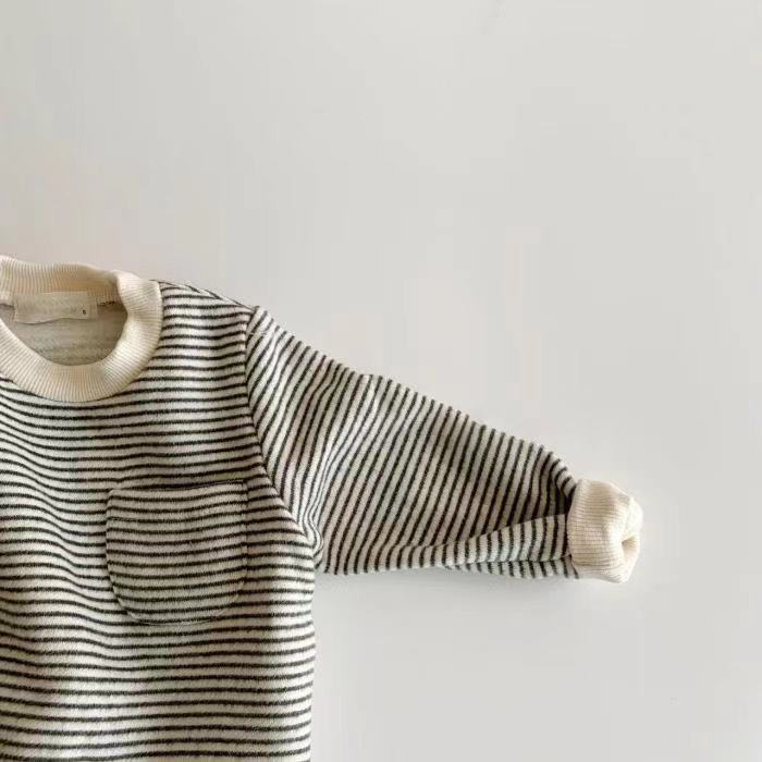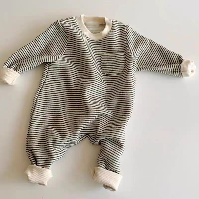 Korean Style Spring And Autumn New Men And Women Baby Striped Long-sleeve Jumpsuit