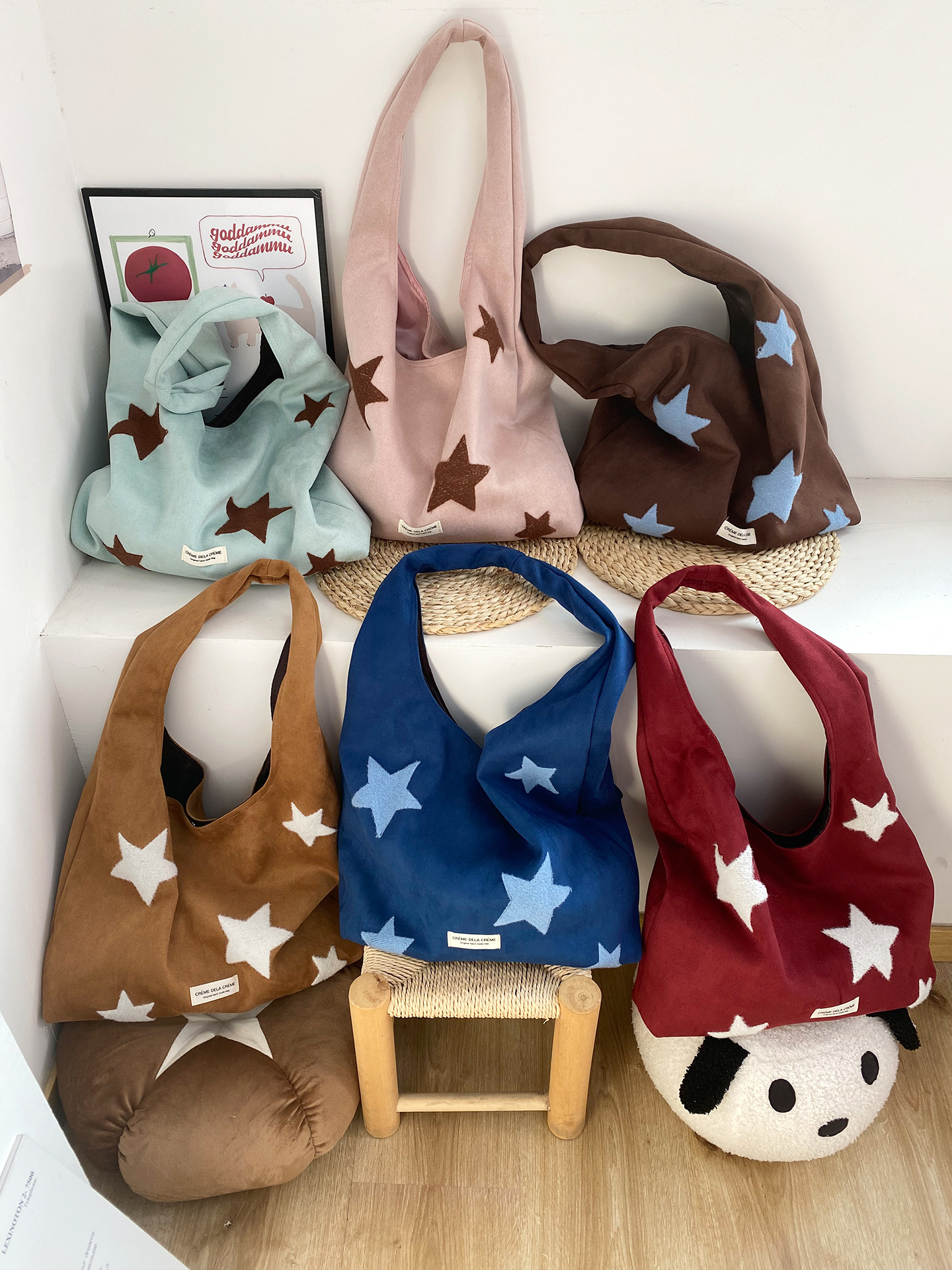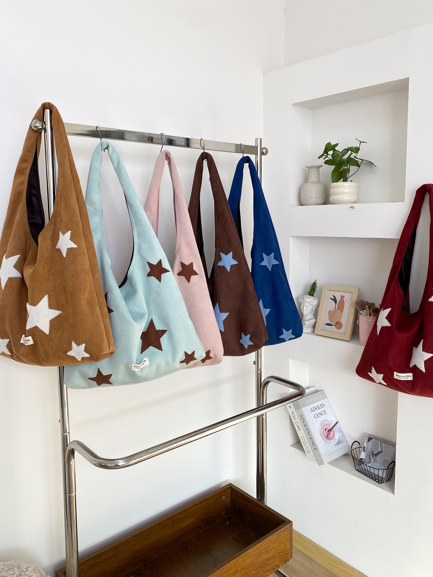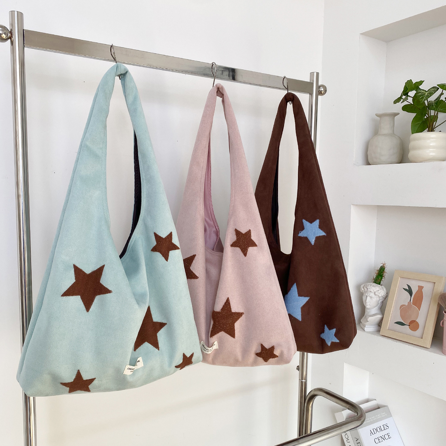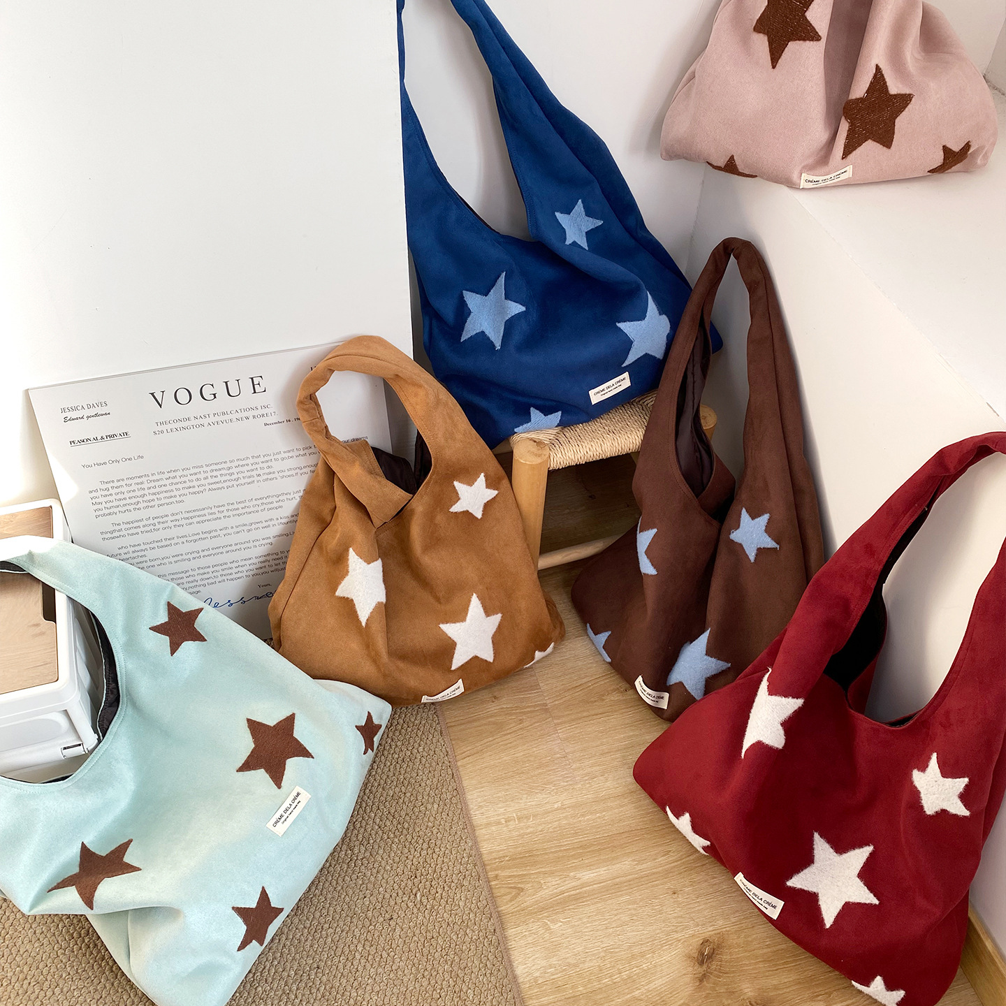 Colors: Starry Sky Faux Suede Vest Bag—Dark Brown, Starry Sky Faux Suede Vest Bag—Ochre, Starry Sky Faux Suede Vest Bag—Wine Red, Starry Sky Faux Suede Vest Bag—Royal Blue, Starry Sky Faux Suede Vest Bag—Light Pink, Starry Sky Faux Suede Vest Bag—Mint Green