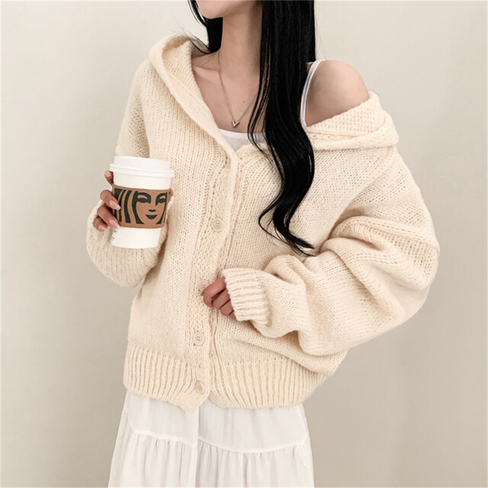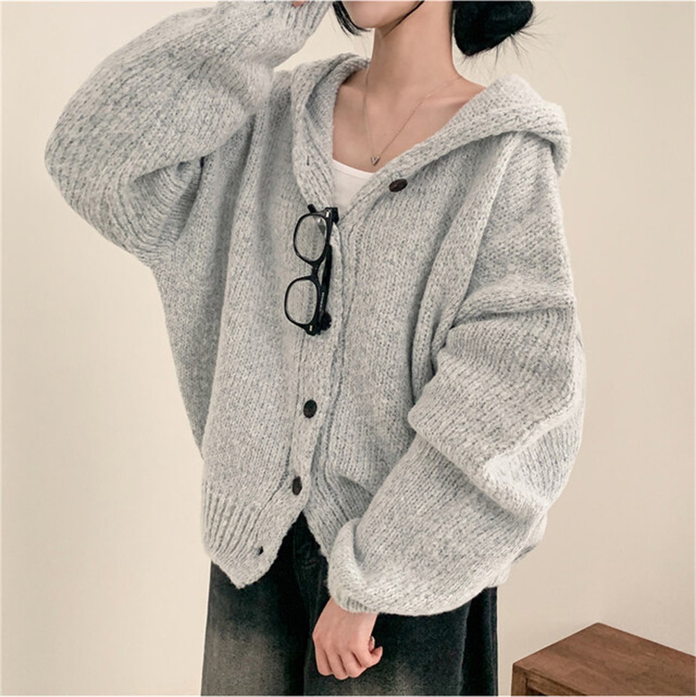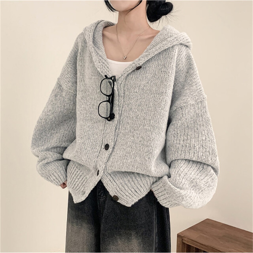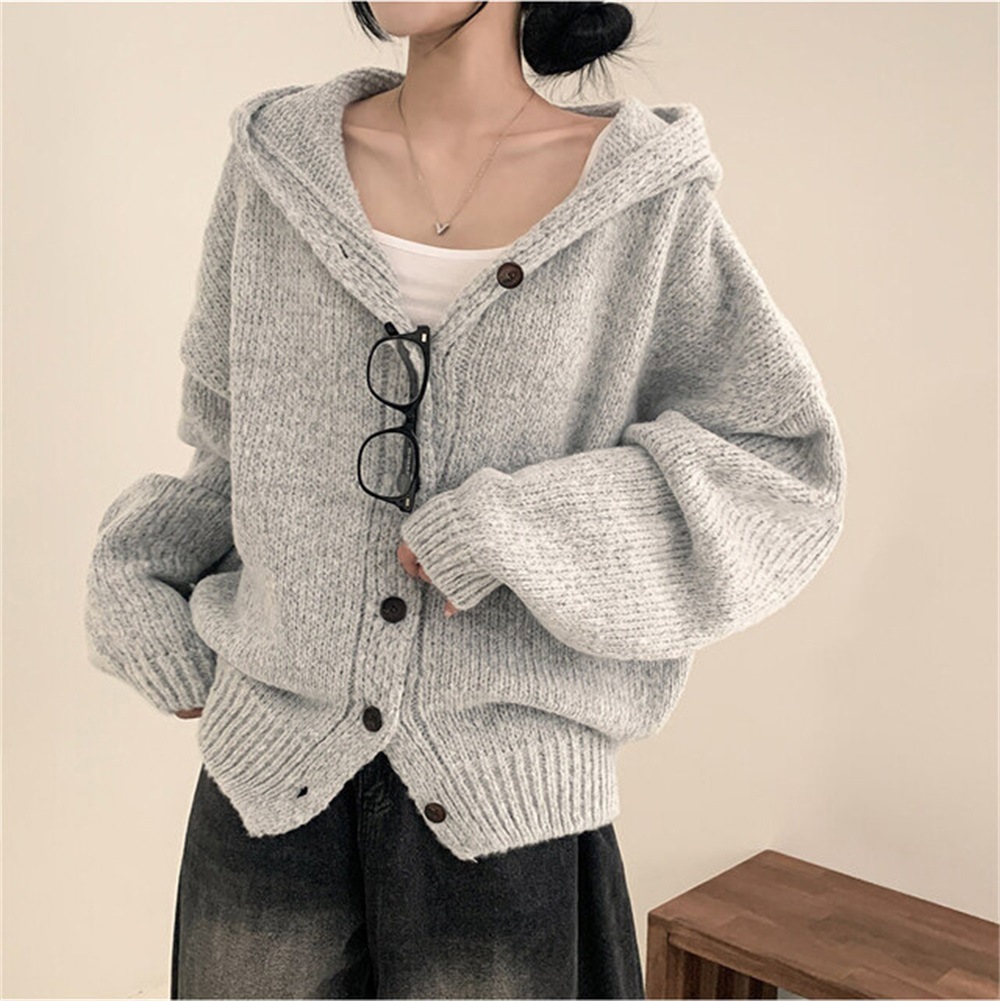Korean Style Sweater Coat Single Row Button Knitted Cardigan
