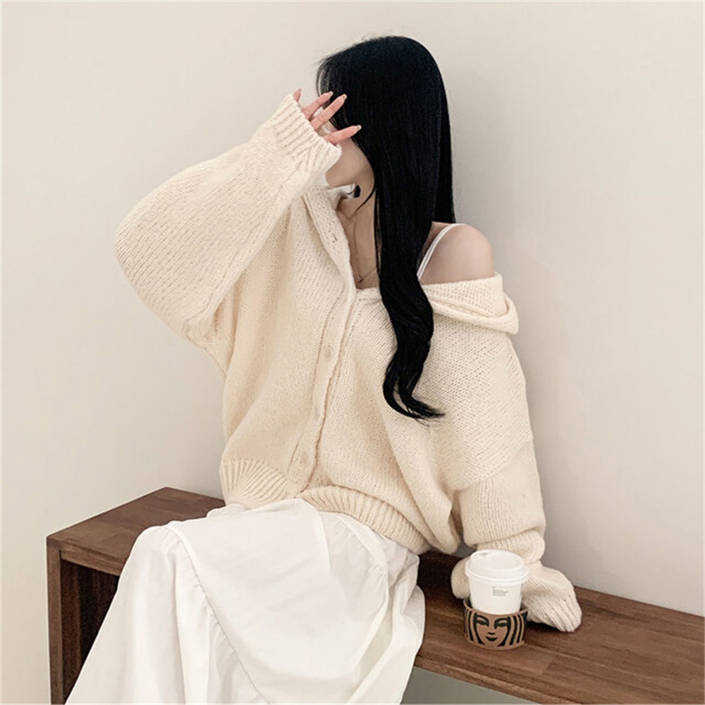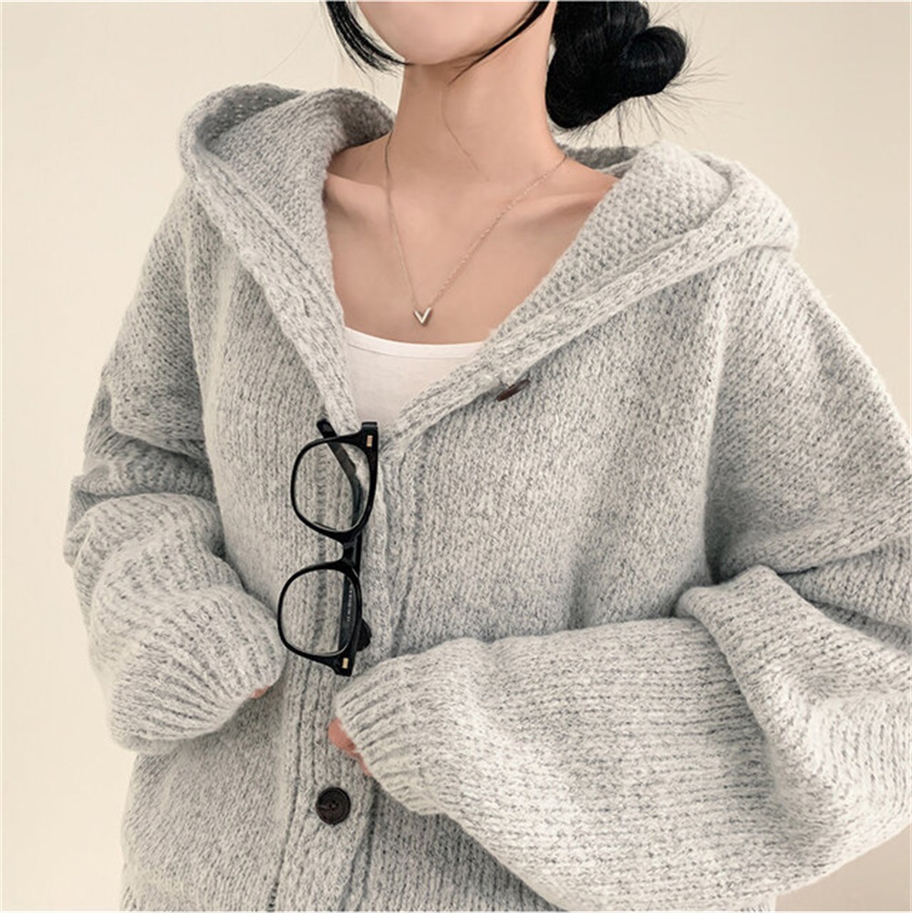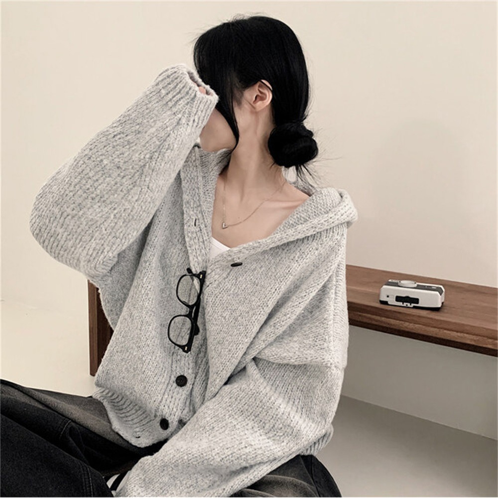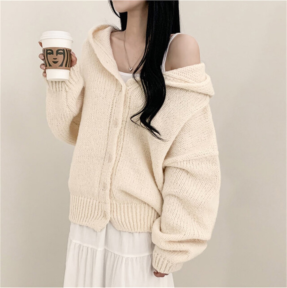 Korean Style Sweater Coat Single Row Button Knitted Cardigan