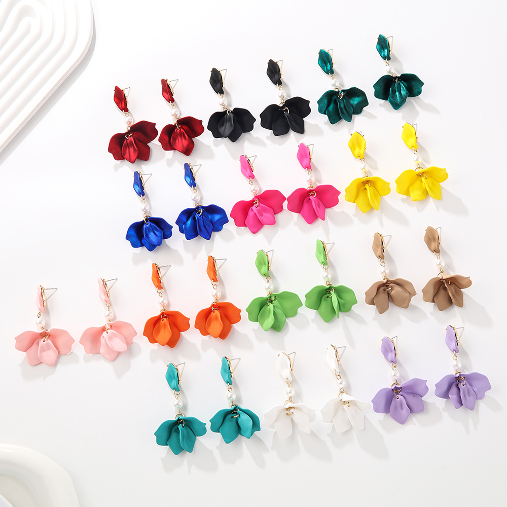 Color: pearly red earrings, black earrings, Pearl green earrings, pearlized blue earrings, Rose Red earrings, yellow earrings, pink earrings, orange earrings, green earrings, brown earrings, Lake blue earrings, white earrings, purple earrings