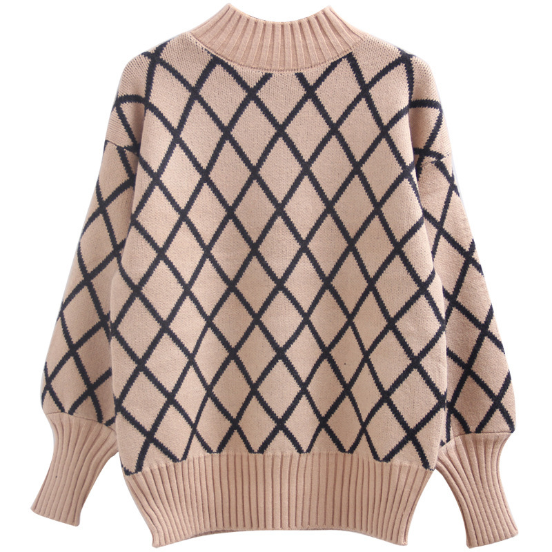 Korean Style Trendy Diamond Grid Pullover Knitted Sweater