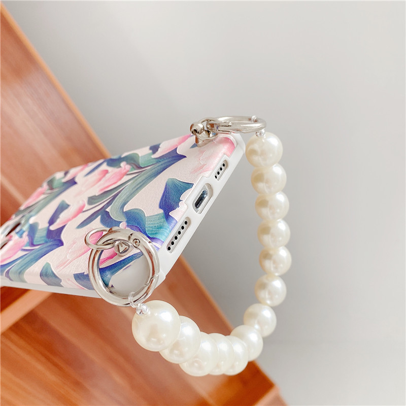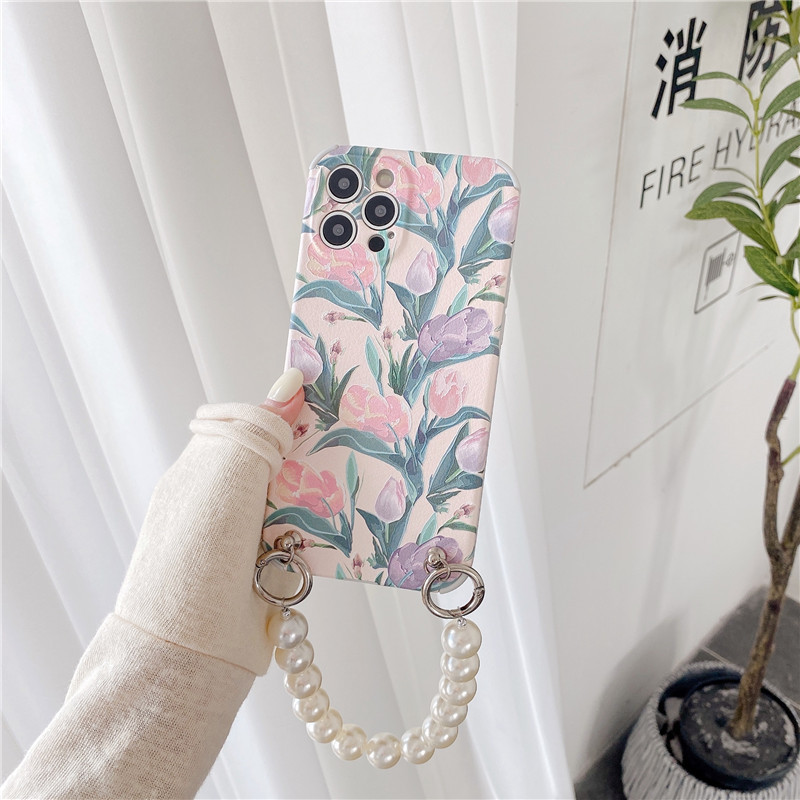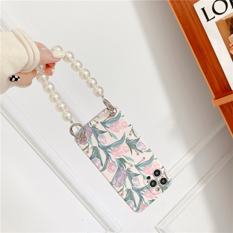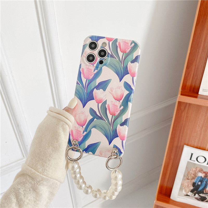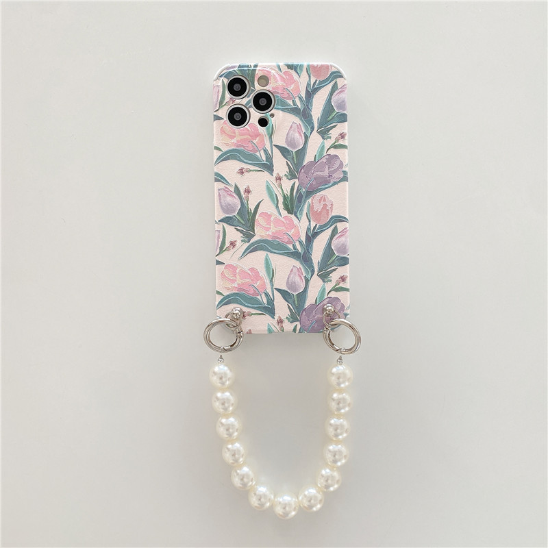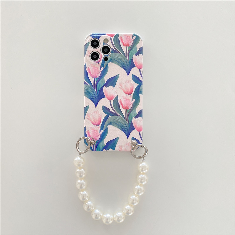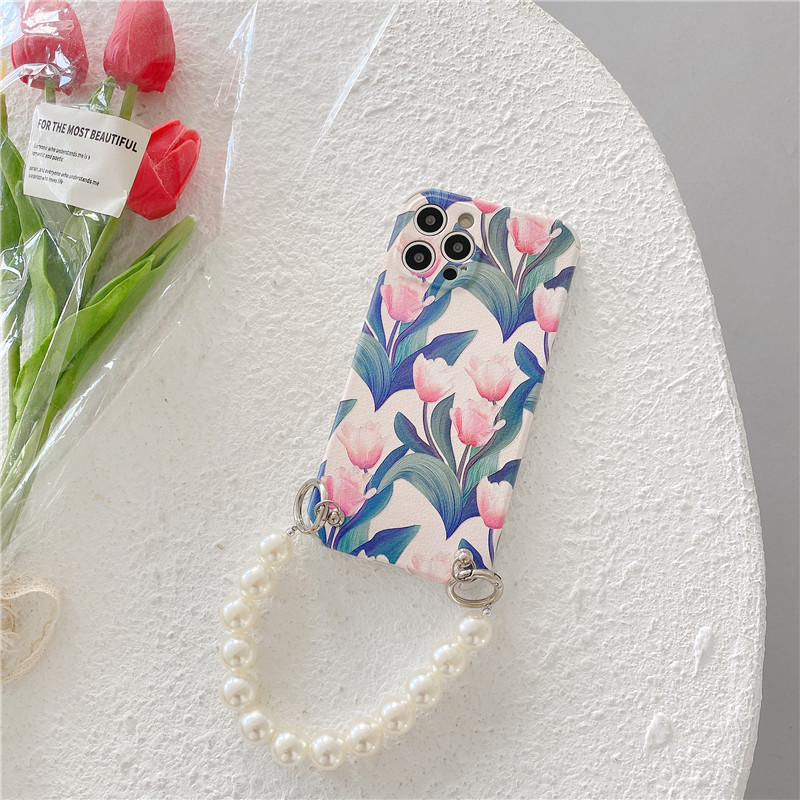 Color: lambskin pattern [light pink tulip + large pearl chain], lambskin pattern [dark pink tulip + large pearl chain]