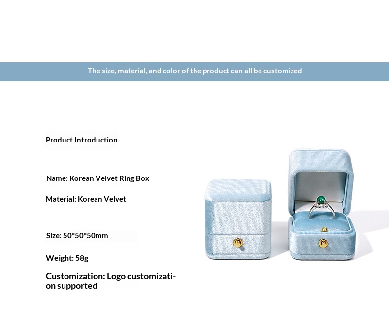 Product information:Function: Ring storage box Material: Velvet Color: Blue