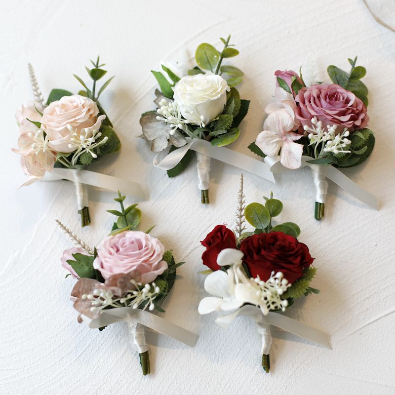 Color: light champagne color corsage, light champagne color wrist flower, white corsage, white wrist flower, Rose purple corsage, Rose purple wrist flower, red corsage, red wrist flower, pink purple corsage, pink purple wrist flower