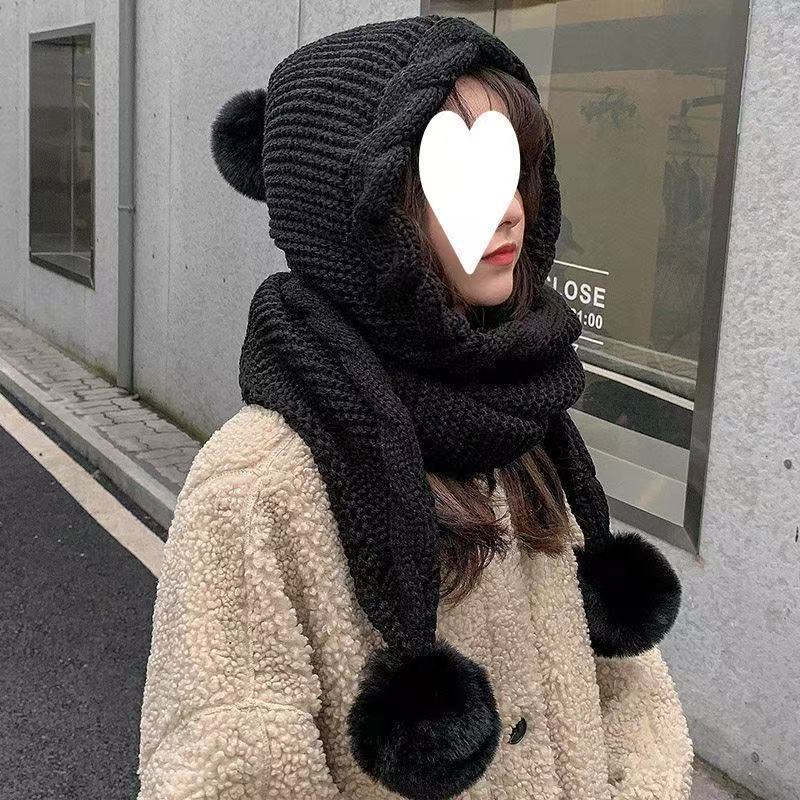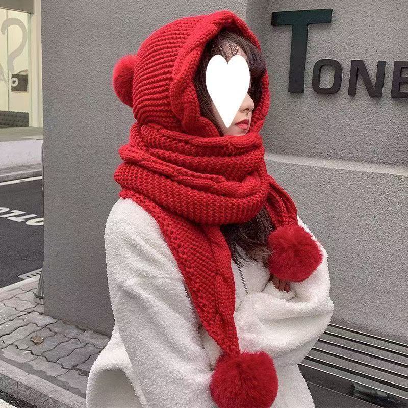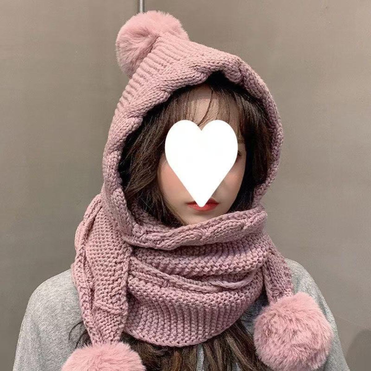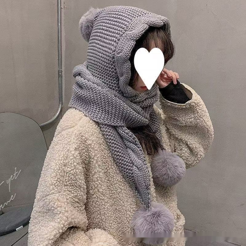 Color: three-ball scarf hat "khaki", three-ball scarf hat "black", three-ball scarf hat "red", three-ball scarf hat "gray", three-ball scarf hat "pink"