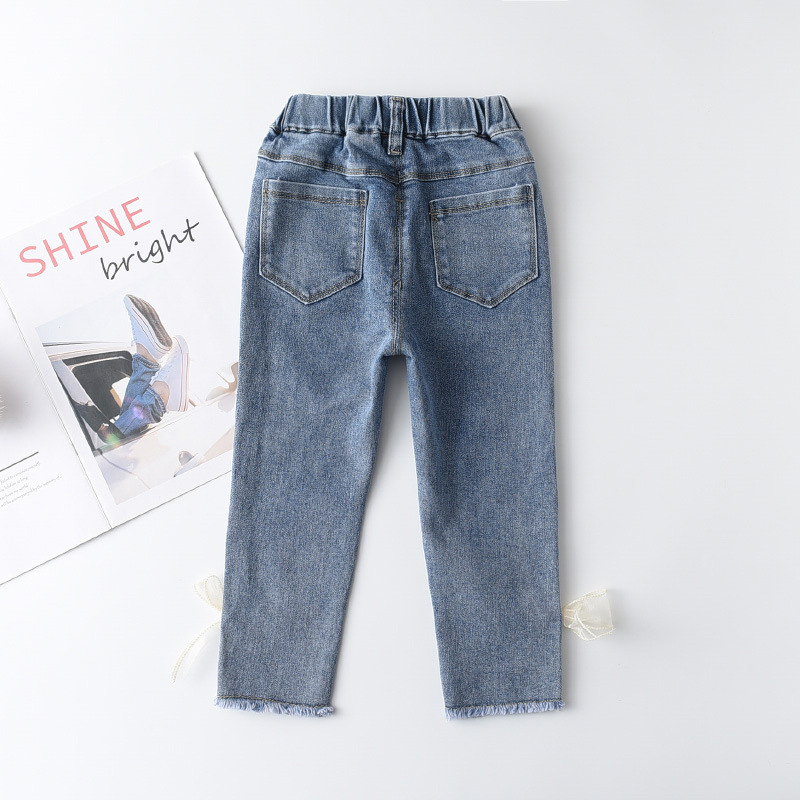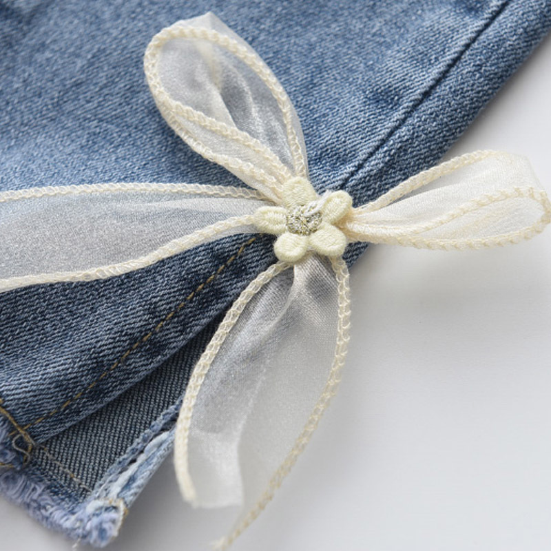 Korean Style Young And Little Girls Baby Sweet Fashion Bowknot Slim Jeans Fashion