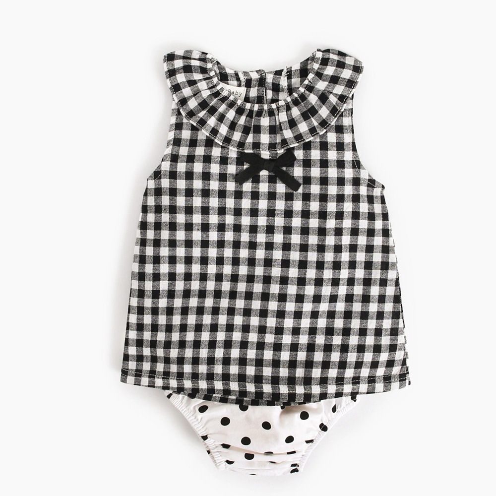 Korean version of children's summer ins plaid: Korean version of children's summer ins plaid polka dot kids two-piece bowknot T-shirt briefs baby suit Europe and America