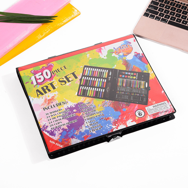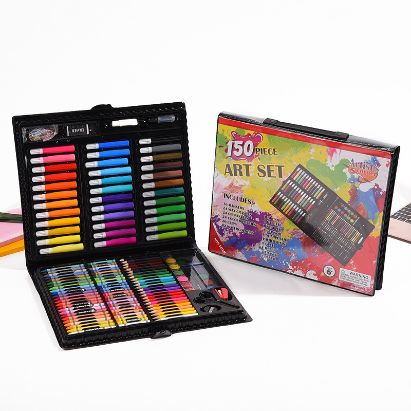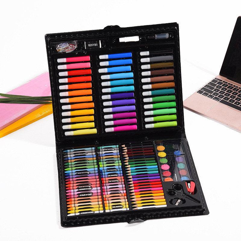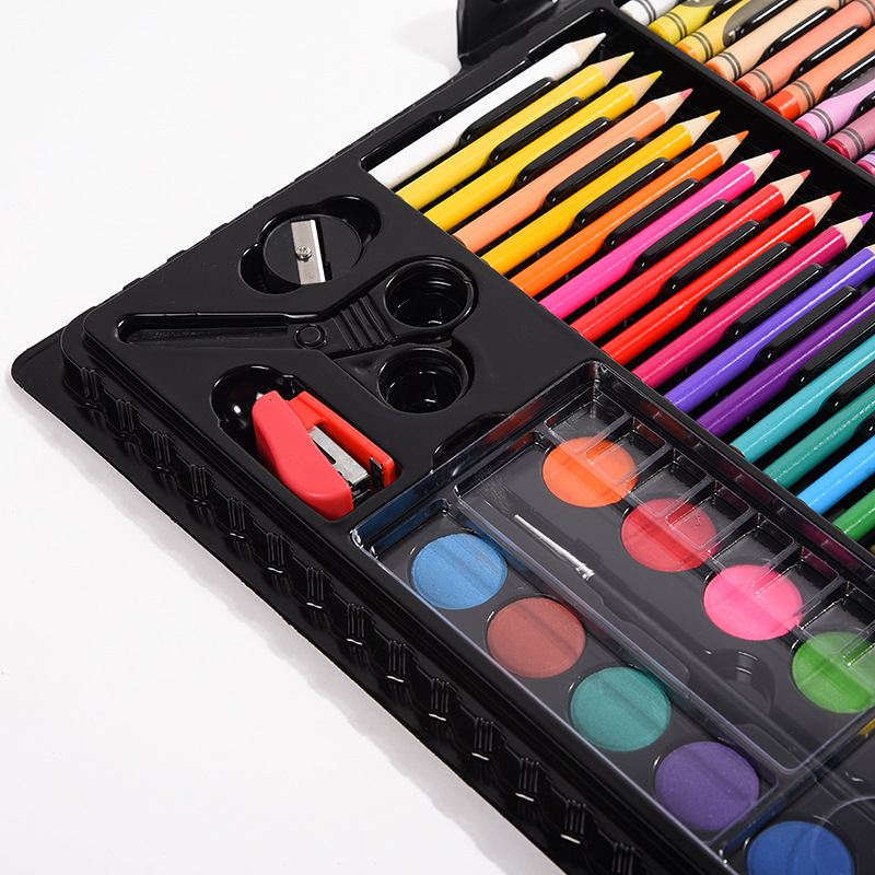 [Internal structure] 36 short and thick watercolor pens, 24 crayons, 24 oil pastels, 24 color bars, color lead, several paper clips, 12 solid watercolor powder cakes, 1 brush, 1 palette, 1 pencil, 1 eraser, 1 pair of scissors, 1 ruler, 1 bottle of glue, 1 pencil sharpener, 1 sponge, 1 stapler