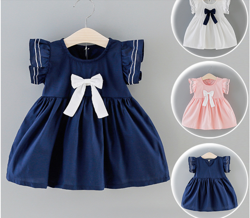Infant baby girls fly sleeve knot princess dress clothing