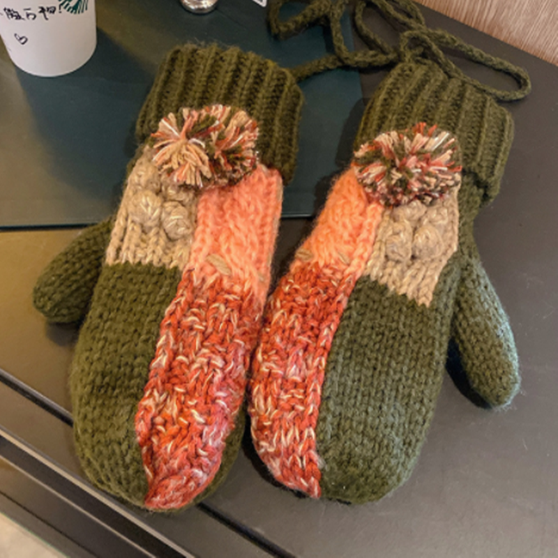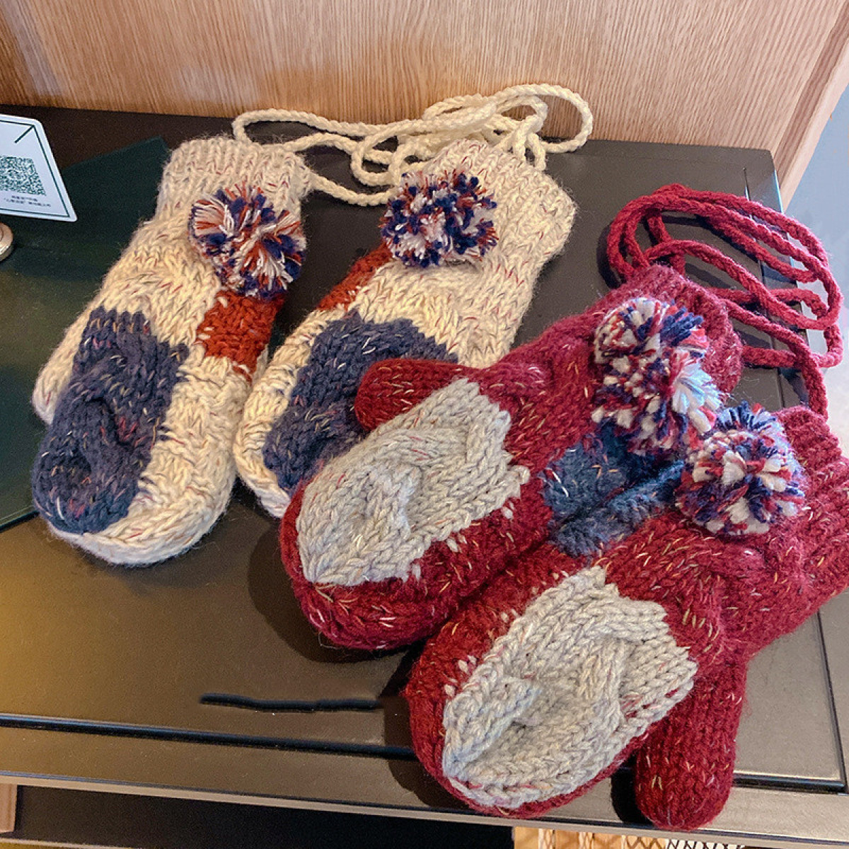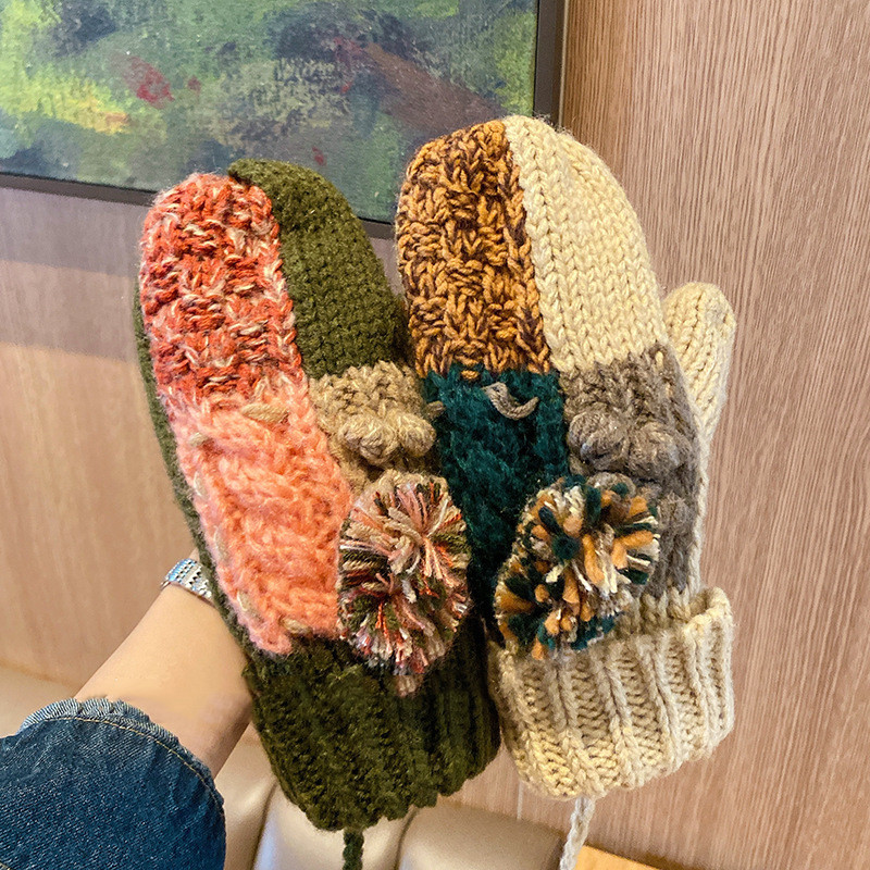 Korean Version Thickened Fleece Warm And Cold-proof Wool Knitted Mittens