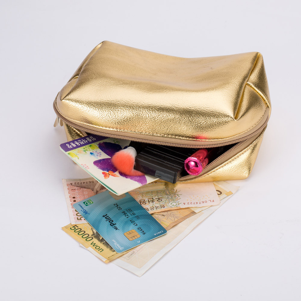 Size: 22*14.5cmFabric: puColor: goldenLining: polyesterInternal: NoneFunction: Hand holdCapacity: Key change lipstick, etc.