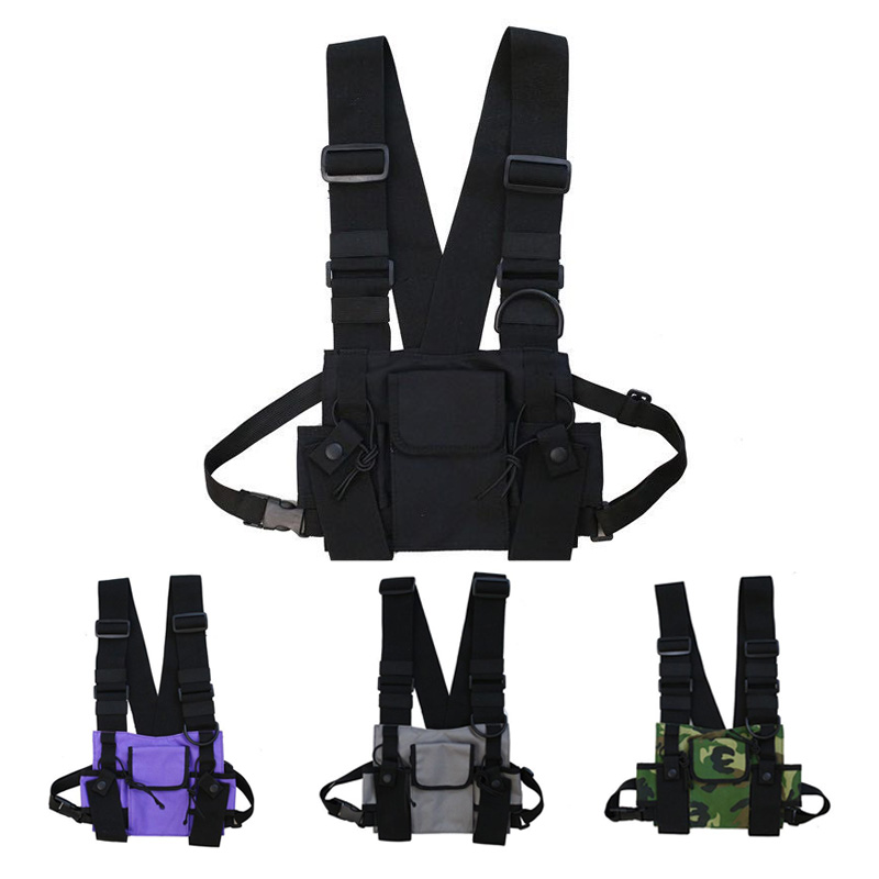 Texture: PCColor classification: grey ,black, purple, camouflageStyle: chest bagSize: Length 27cm X 17.5cm