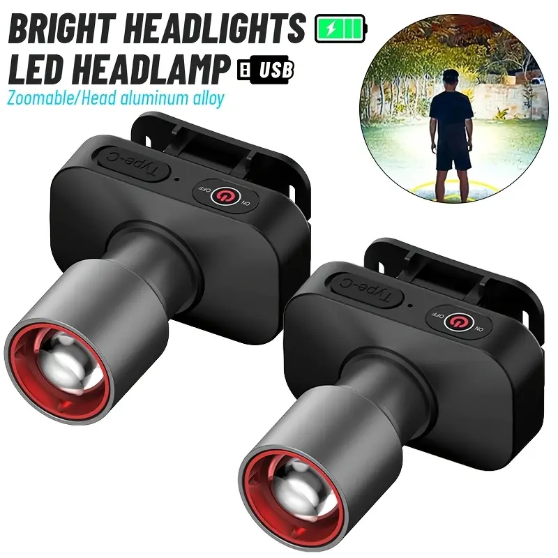 LED Super Bright Headlamp Swave Sensor 3000mAh Waterproof Zoomable 3 Modes Headlamp Type-C Rechargeable