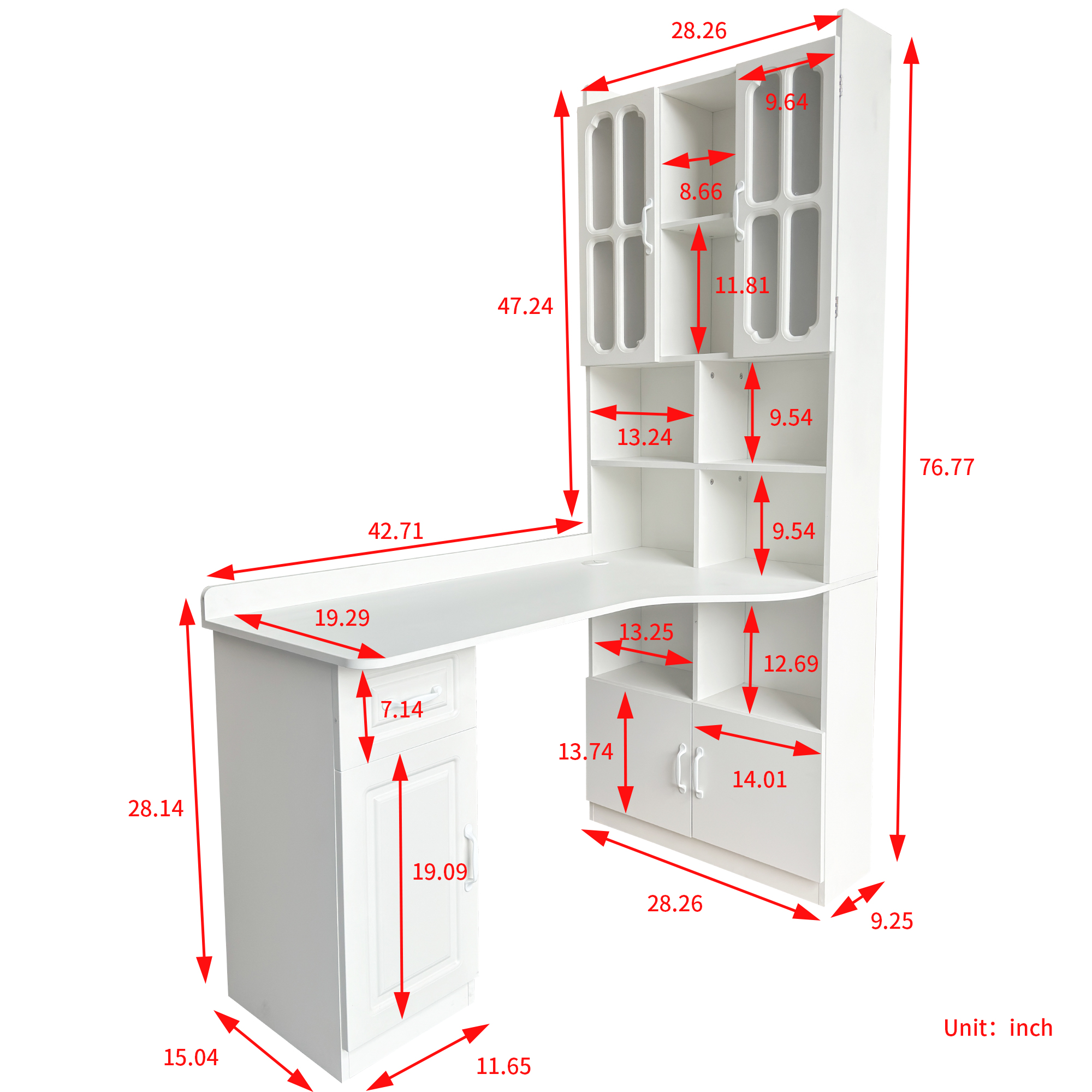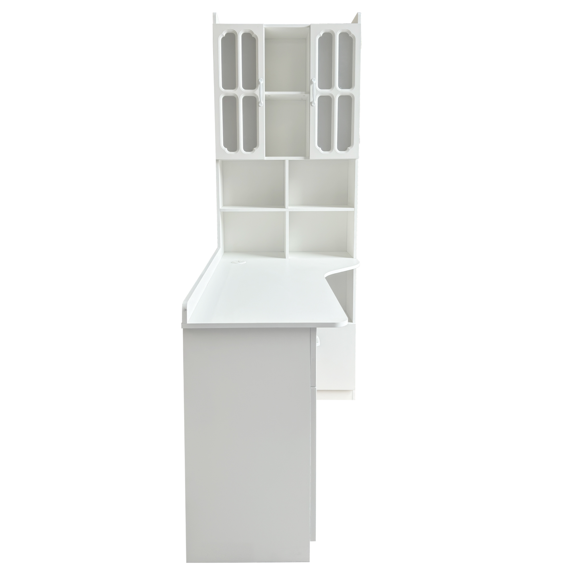 Product Name:L-Shaped Corner Computer Desk for Home Office or Study desk, Study Modern Style Table with Drawers, Bookshelf & Hutch, 2-in-1 L-Shaped Design, Large Working Space,white