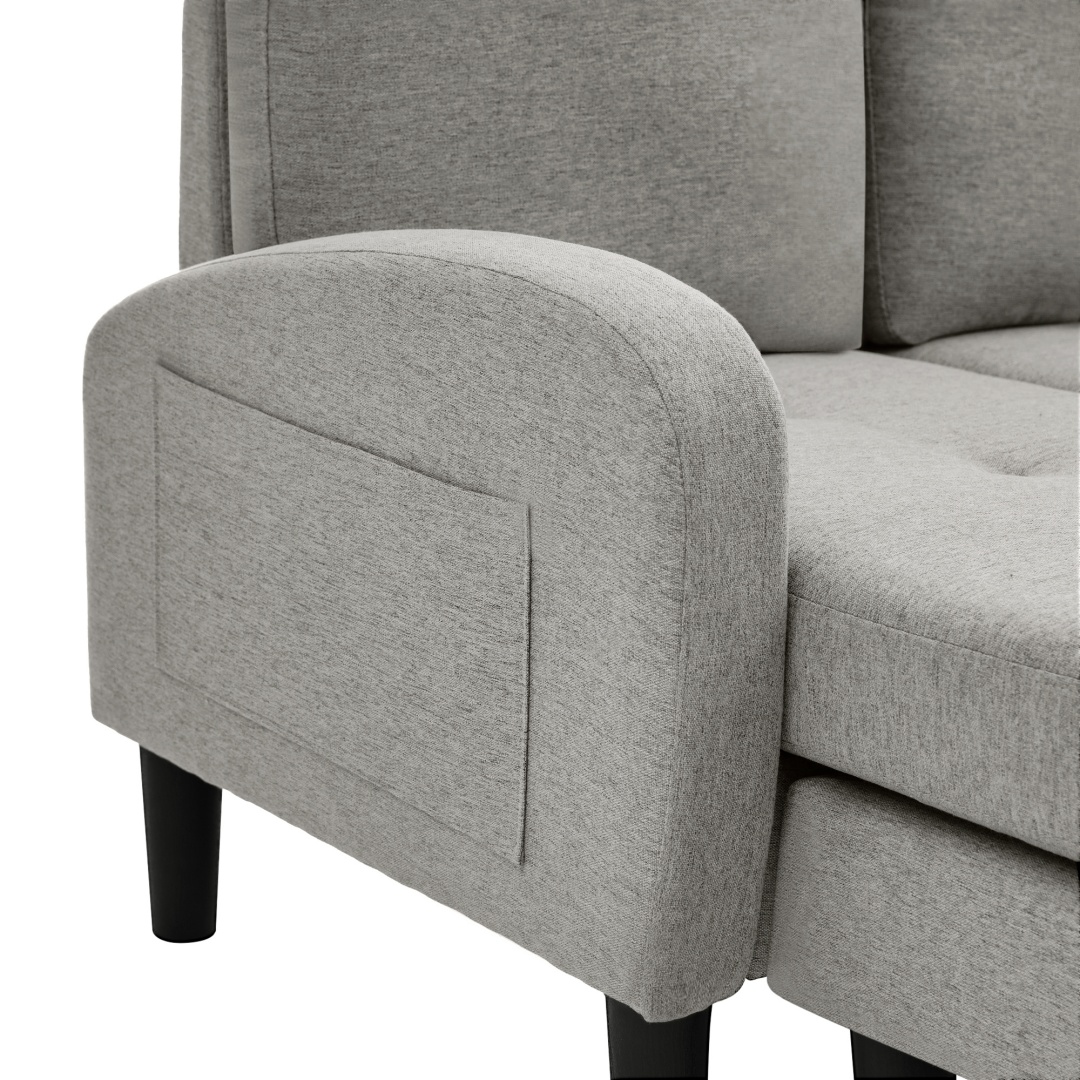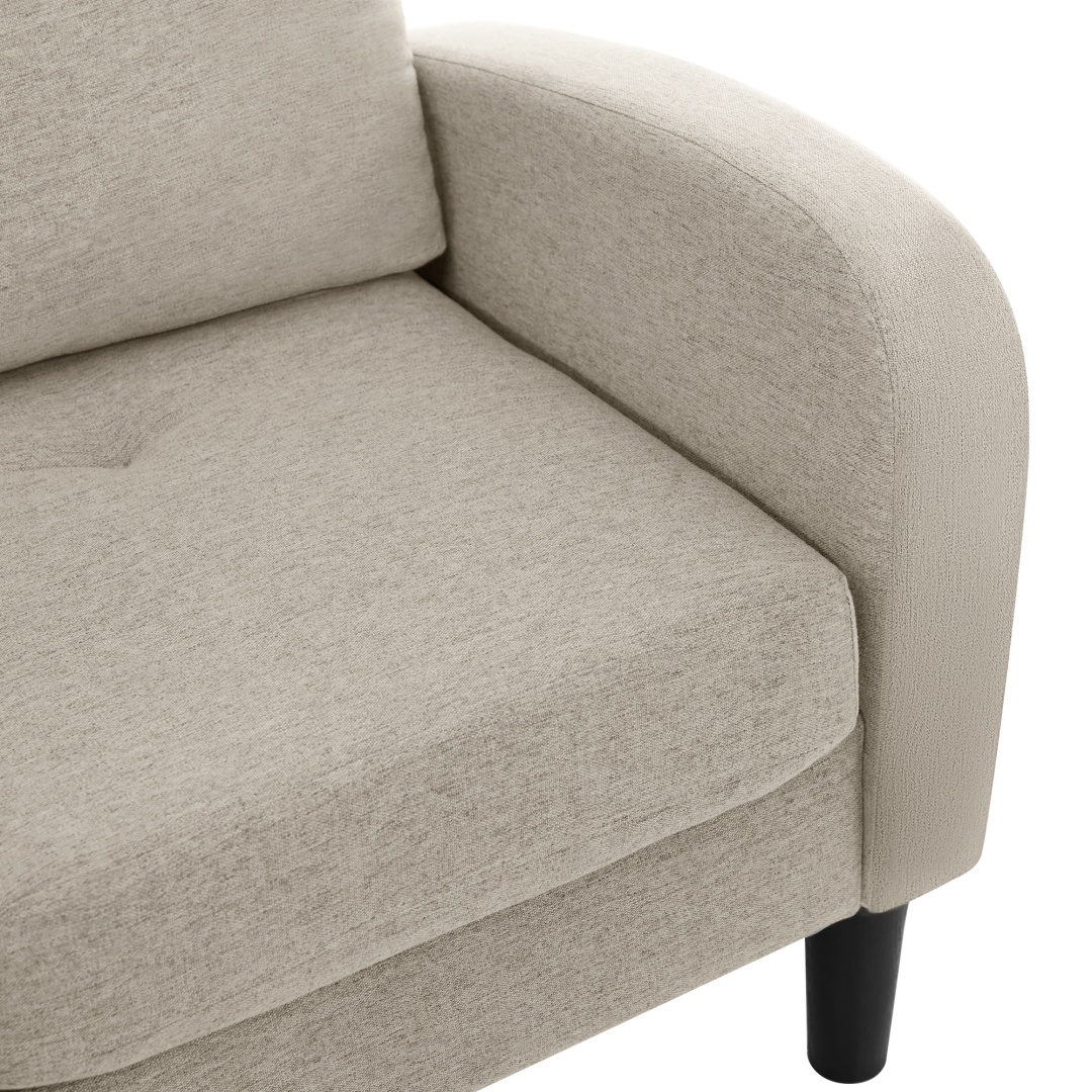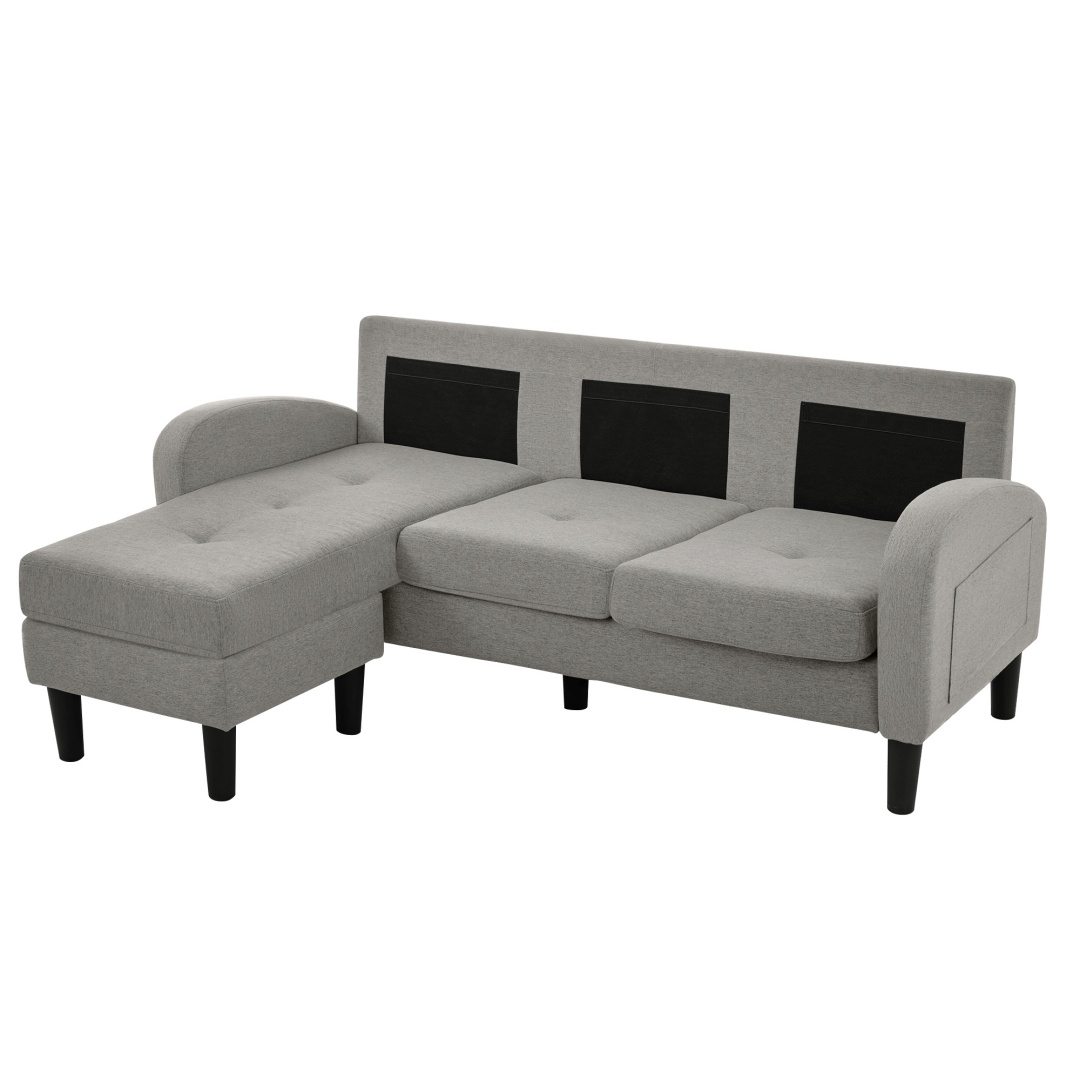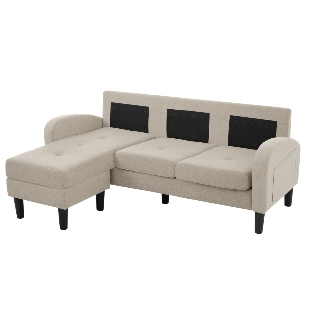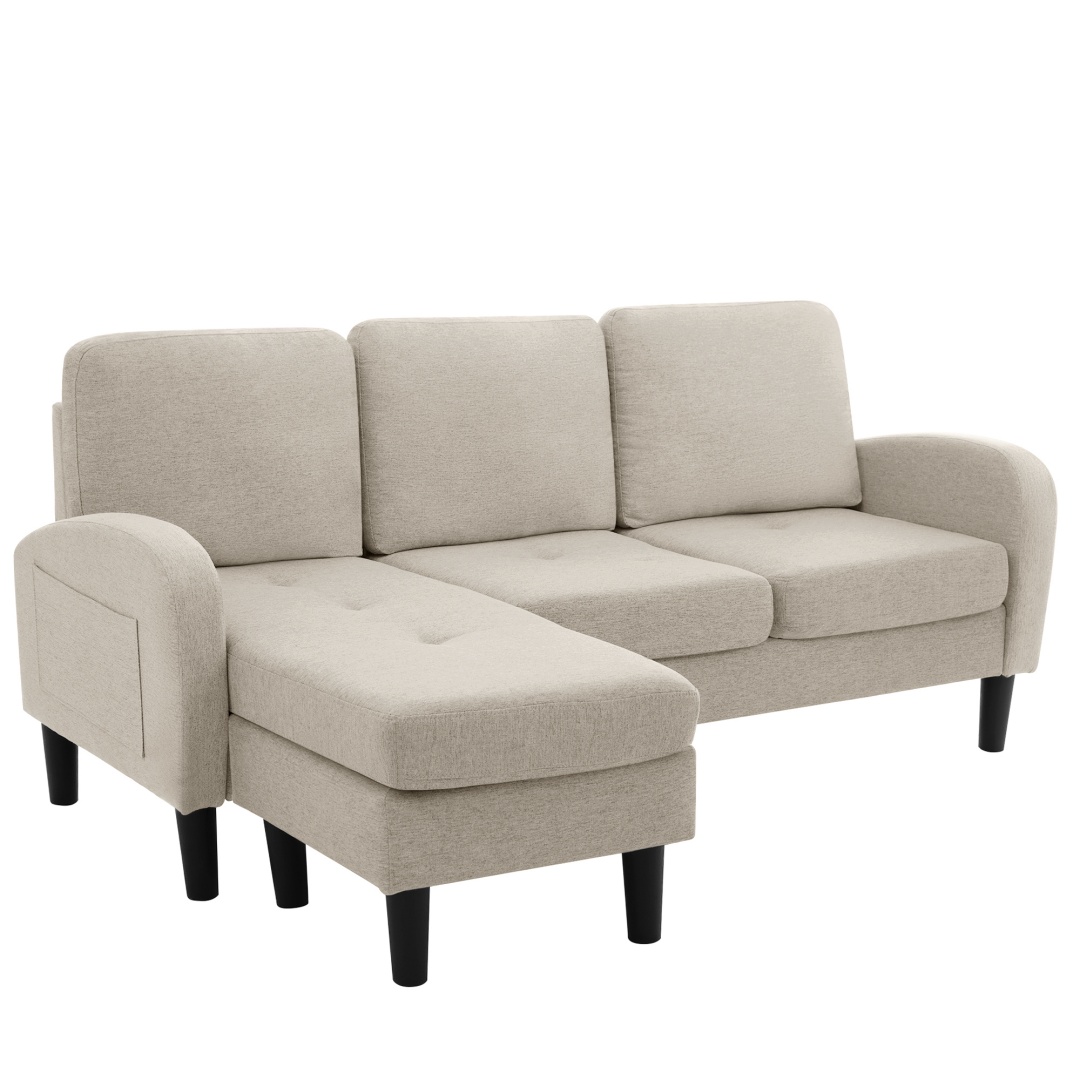 1.Modular Design: The sofa can be flexibly arranged, with a chaise lounge that can be positioned on the left or right to fit different room configurations. 2.Comfortable Padding: The soft cushions provide excellent seating comfort, making it perfect for relaxation and lying down. 3.Ideal for Small Spaces: With compact dimensions of 166 x 118 x 77 cm, this sofa fits perfectly into smaller living rooms, apartments, and offices without sacrificing comfort. 4.Breathable Fabric: The cotton-linen blend fabric cover offers excellent ventilation and remains fresh and cool even on hot days. 5.Sturdy Construction: Thanks to the stable frame and plastic legs, the sofa is particularly durable and stable. 6.Flexible Chaise Lounge: The chaise lounge can be used as an additional lying area or seating space, making the sofa versatile. 7.Easy Assembly: The sofa is quick and easy to assemble – the modular design allows for simple and fast assembly without extra help.