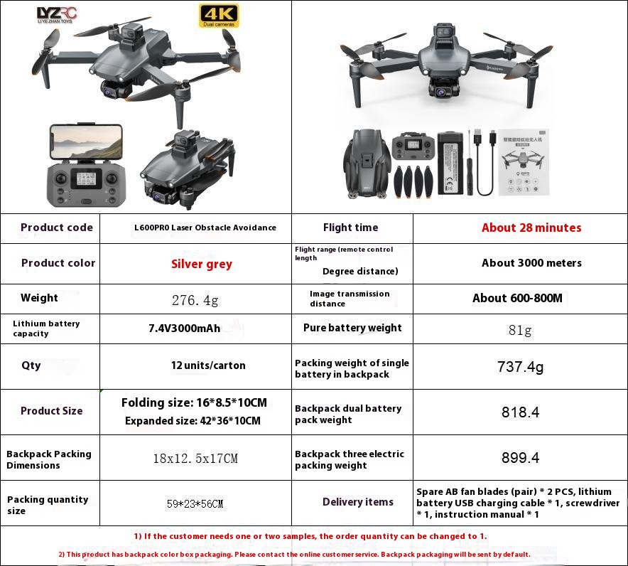 Color: Black package single electric L600 PRO HD 4K, black package double electric L600 PRO HD 4K, black package three electric L600 PRO HD 4K, black package single electric L600 PRO HD laser obstacle avoidance, black bag dual electric L600 PRO HD laser obstacle avoidance, black bag level 3 L600 PRO HD laser obstacle avoidance