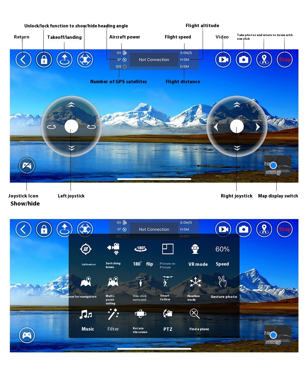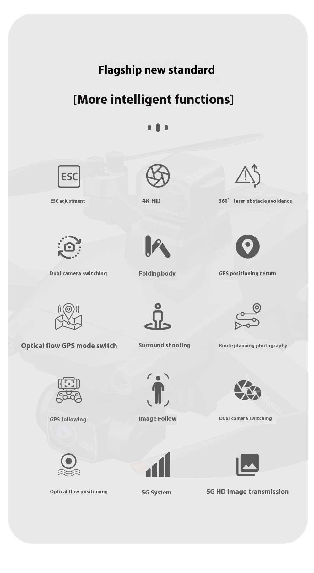 Features: GPS One-Click Return to takeoff point, low power return, no signal return, Image follow, fixed point surround